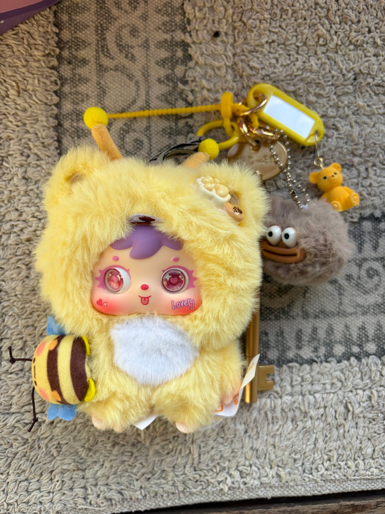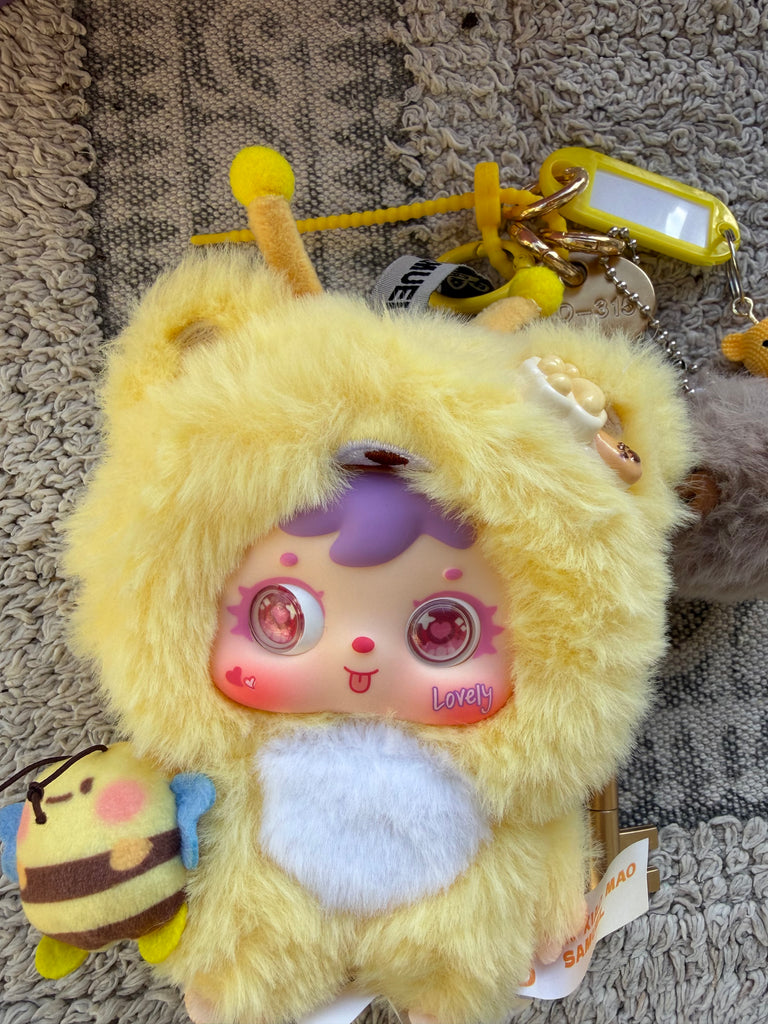 gli occhi del Samuel sono intercambiabili puoi scegliere tra due espressioni diverse .. il pupazzo Samuel ha un apetta in peluche sulla manina estraibile che e’ una calamita