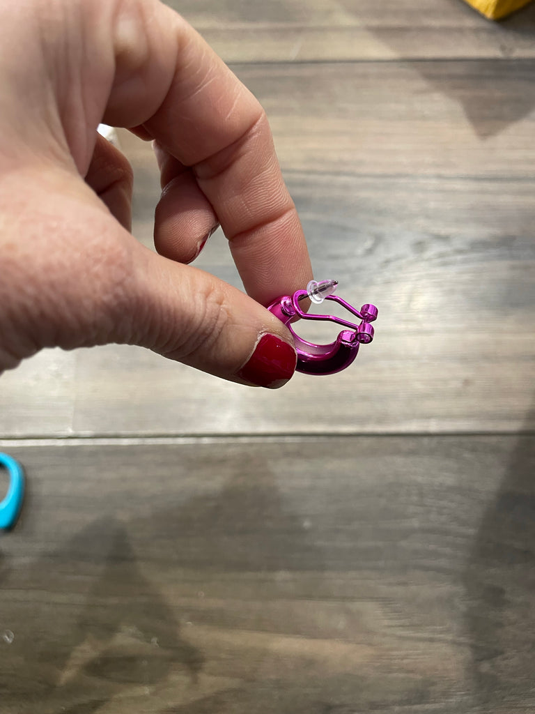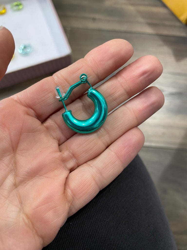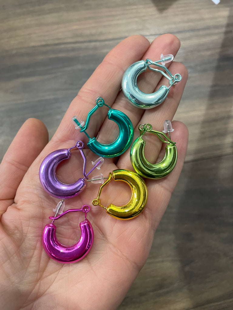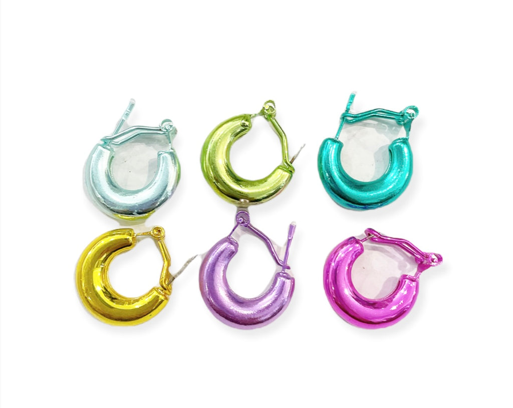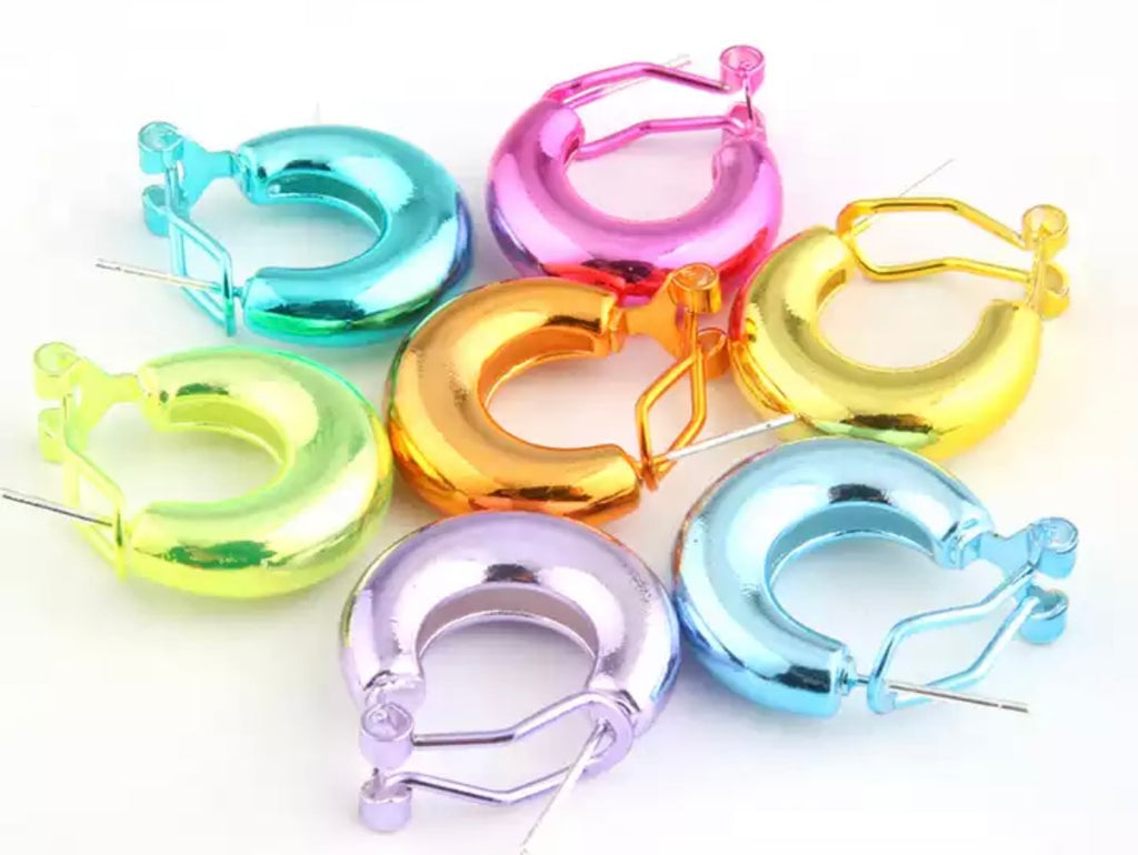 Orecchino singolo cerchio resina metallizzata parti metalliche in acciaio anallergico nikel free .. spessore cerchio 22 mm