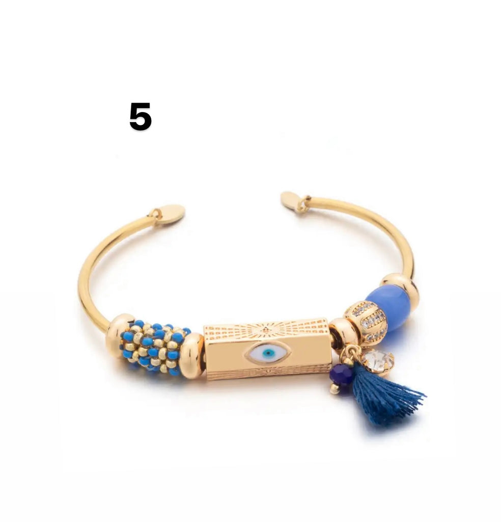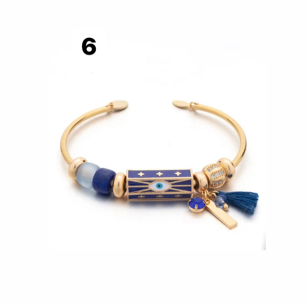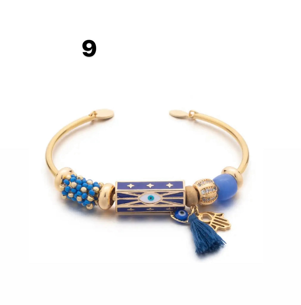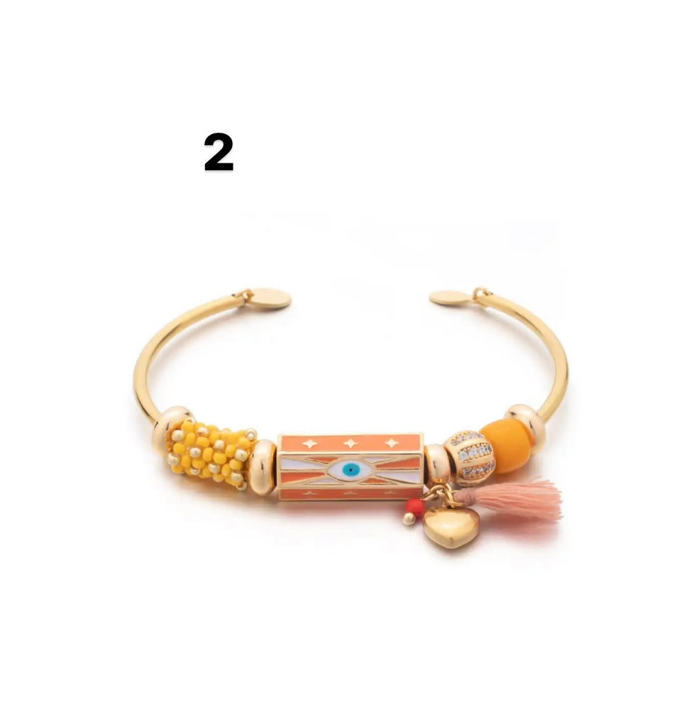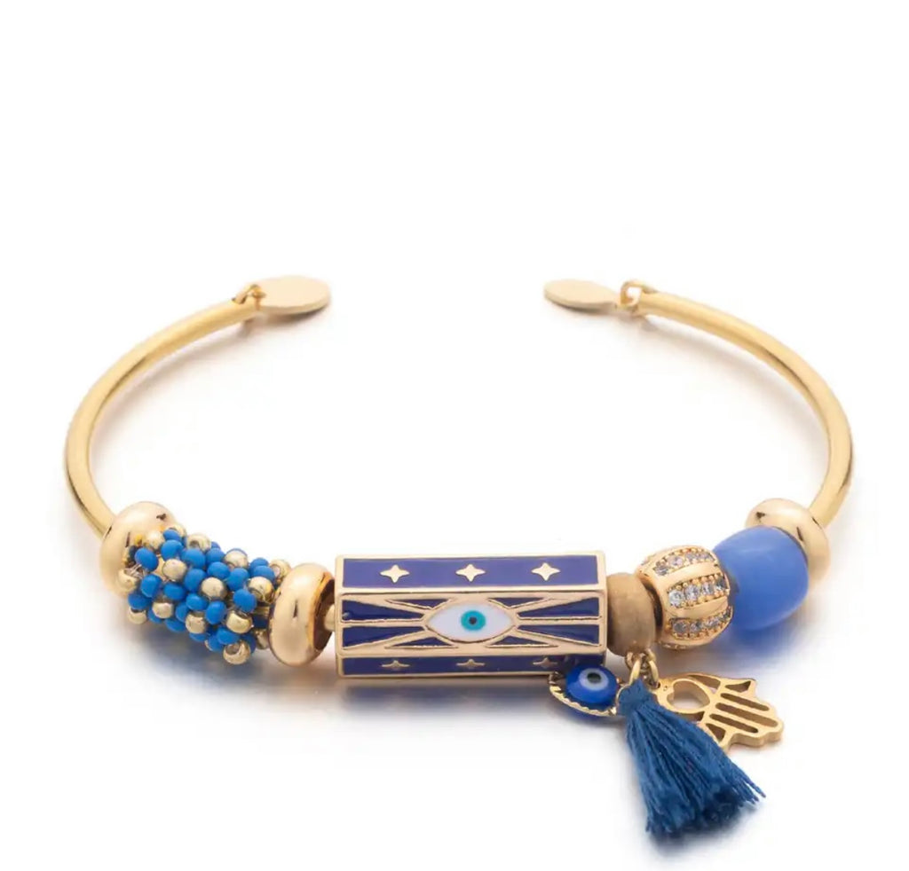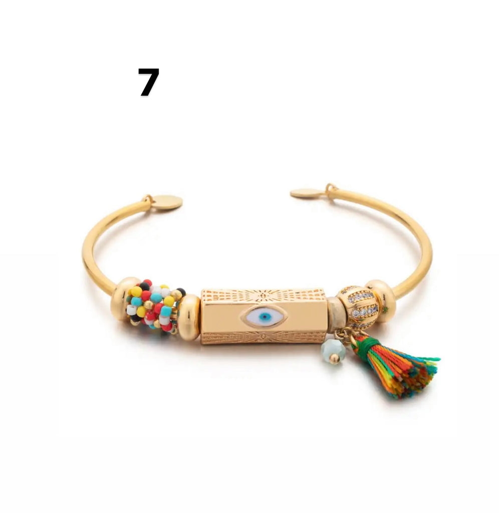 Bracciale bangle amuleto turco cilindrico e charms vari colori