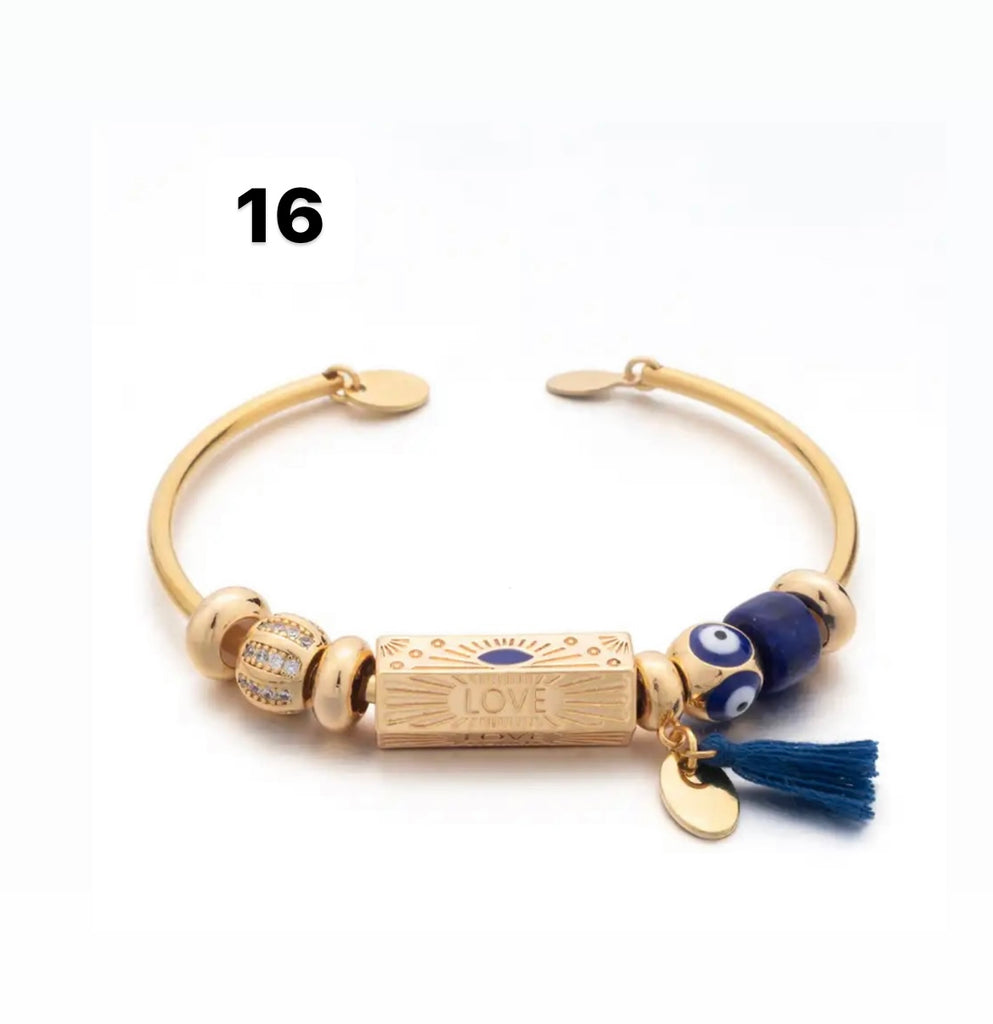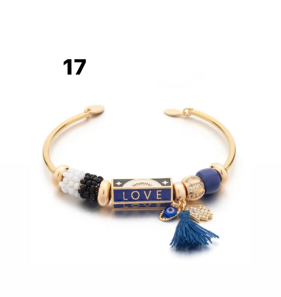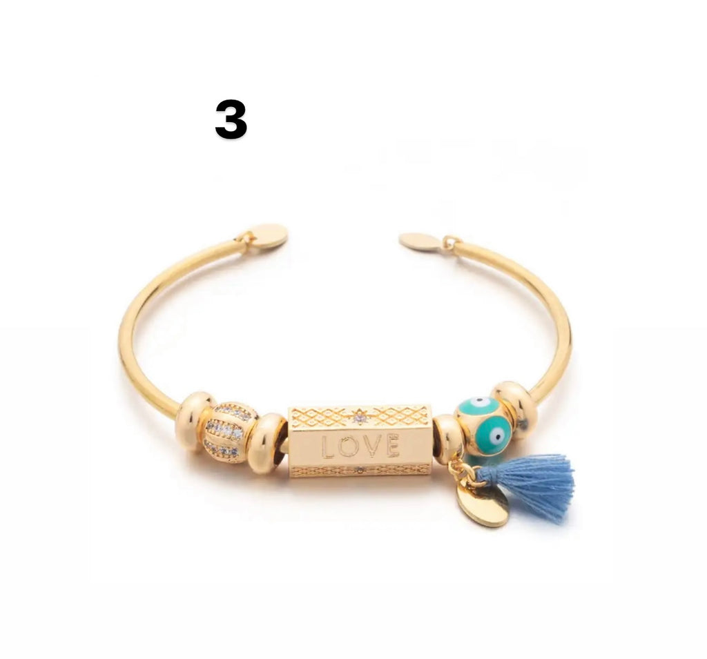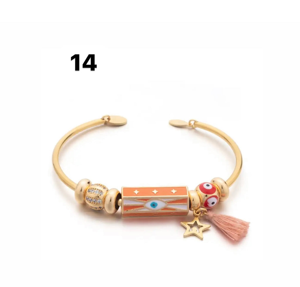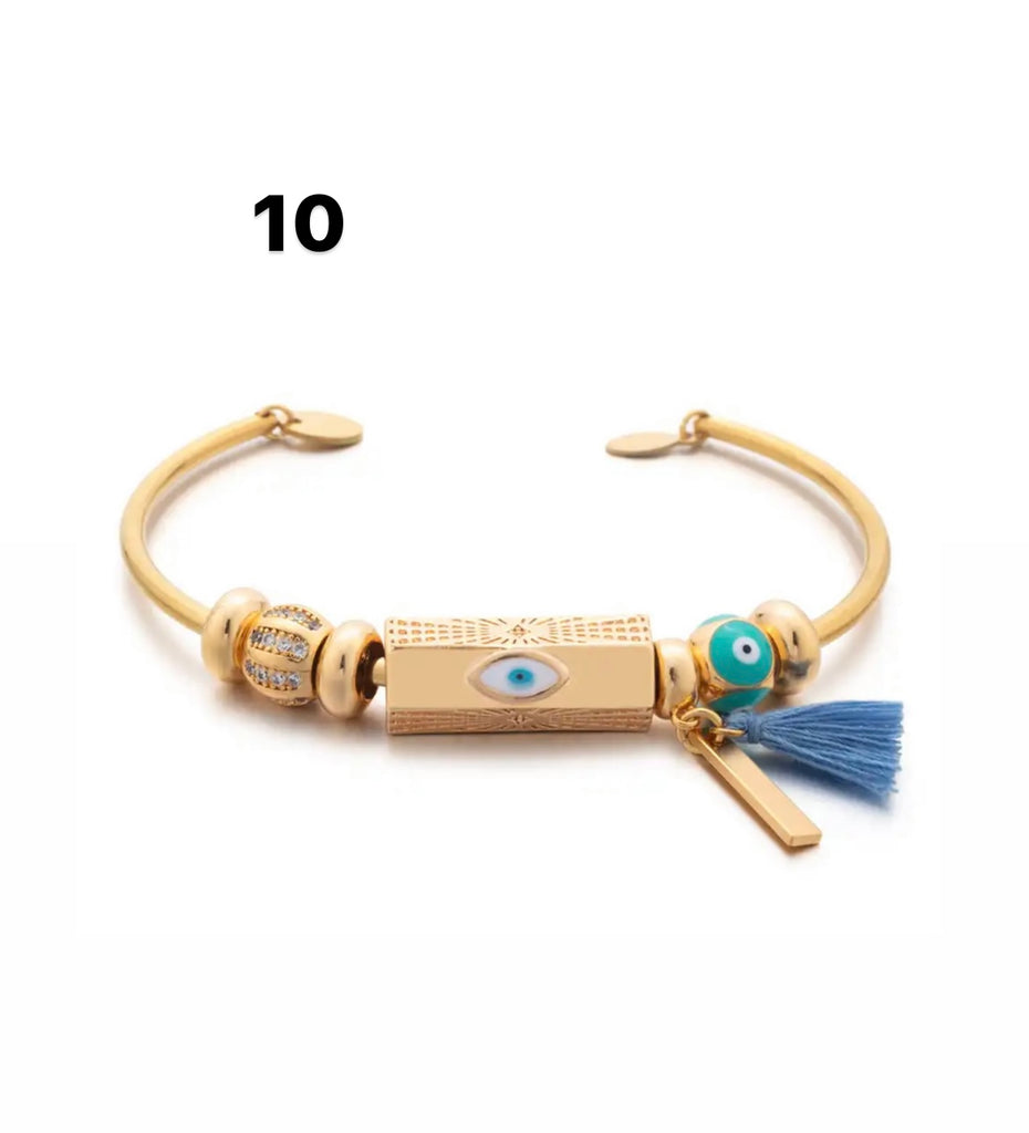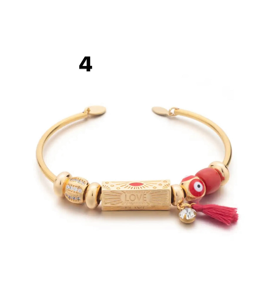 Bracciale bangle amuleto turco cilindrico e charms vari colori