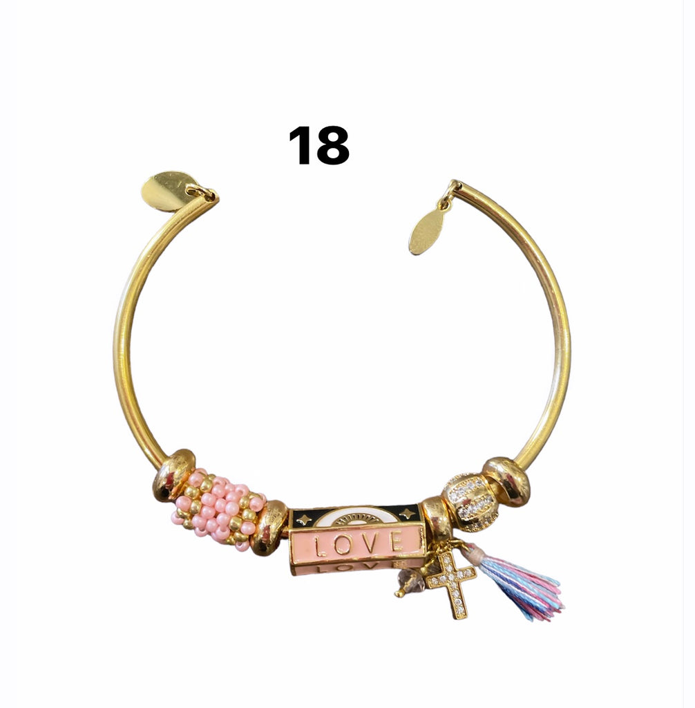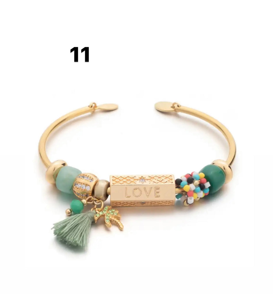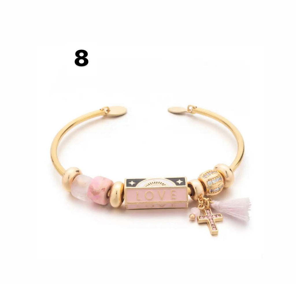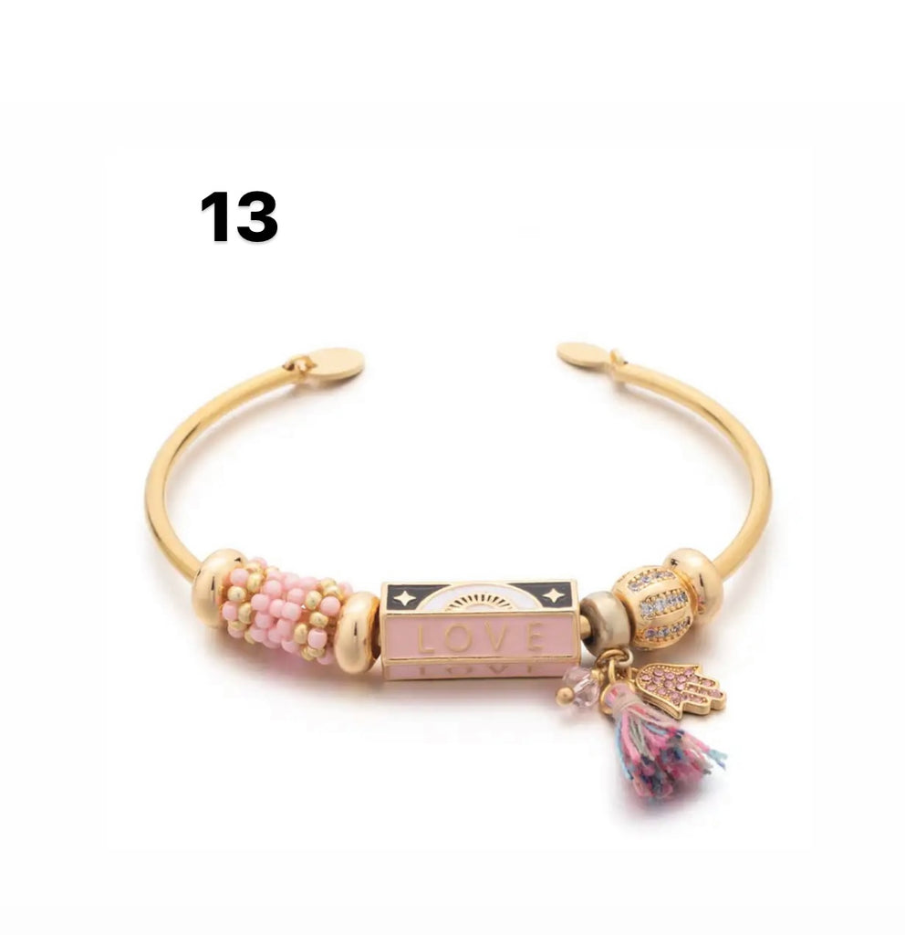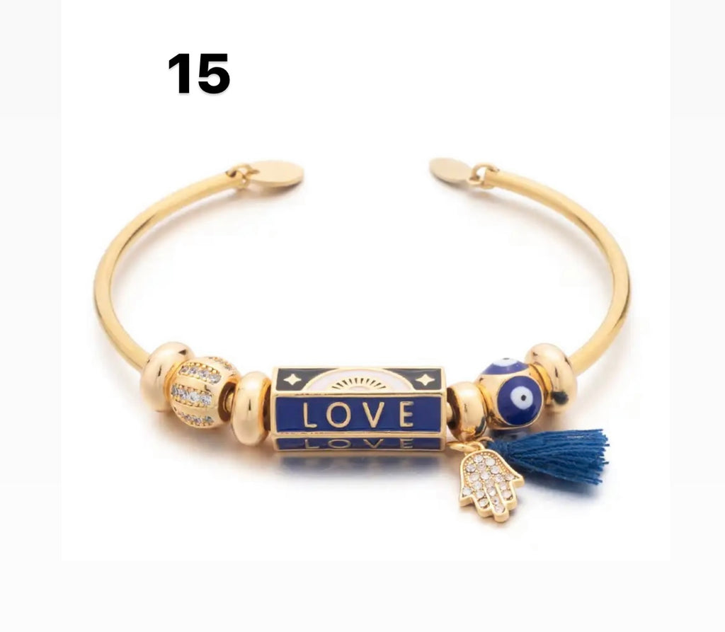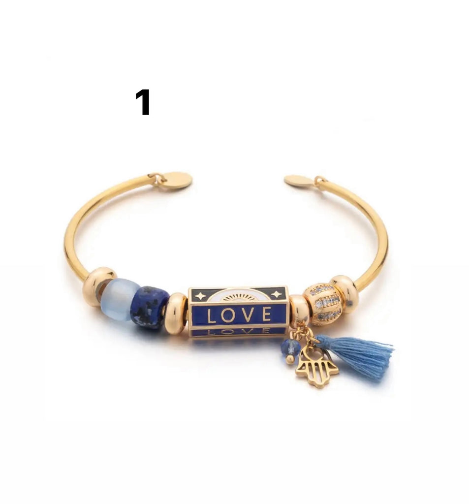 Bracciale bangle amuleto turco cilindrico e charms vari colori