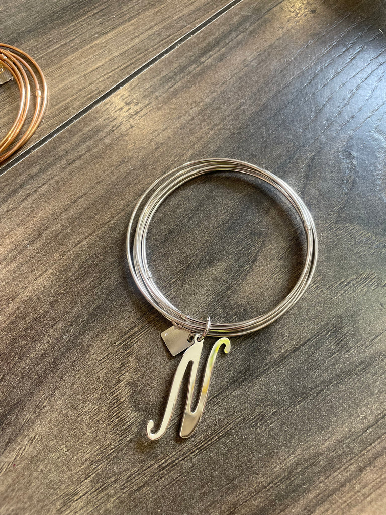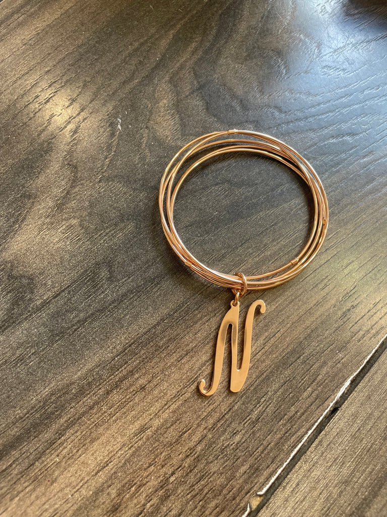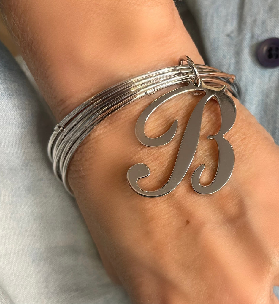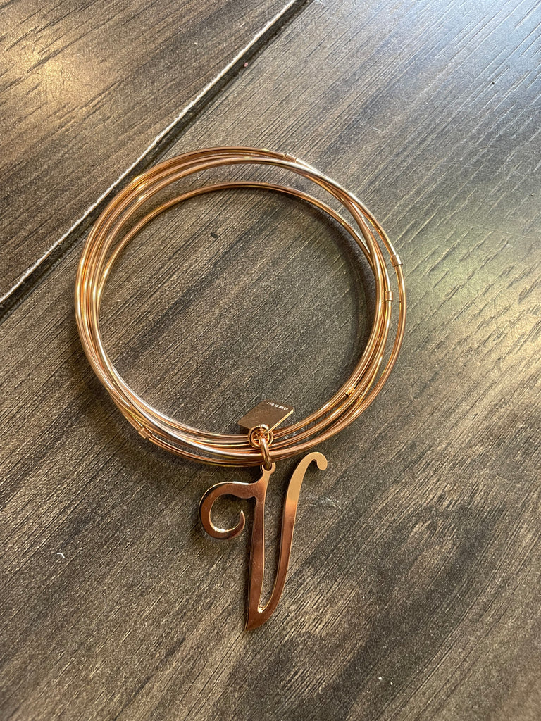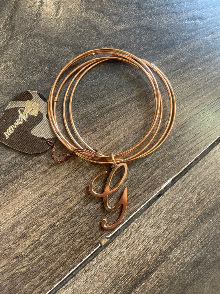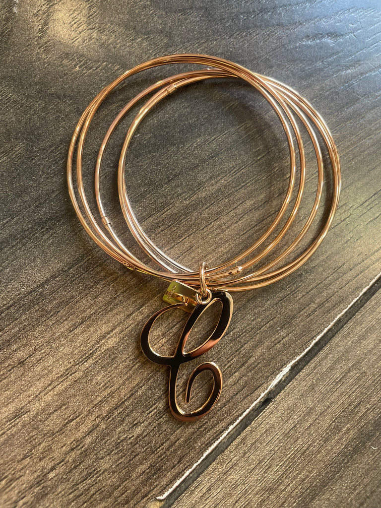 Bracciale so glamour in bronzo anallergico placcato oro bianco o oro rosa completamente nikel feee resistente ad acqua composto da 5 bracciali rigidi non apribili e charms lettera