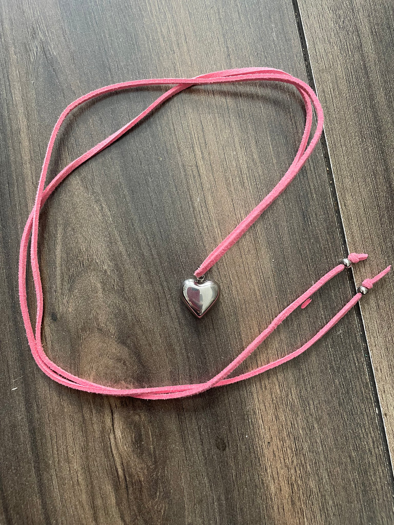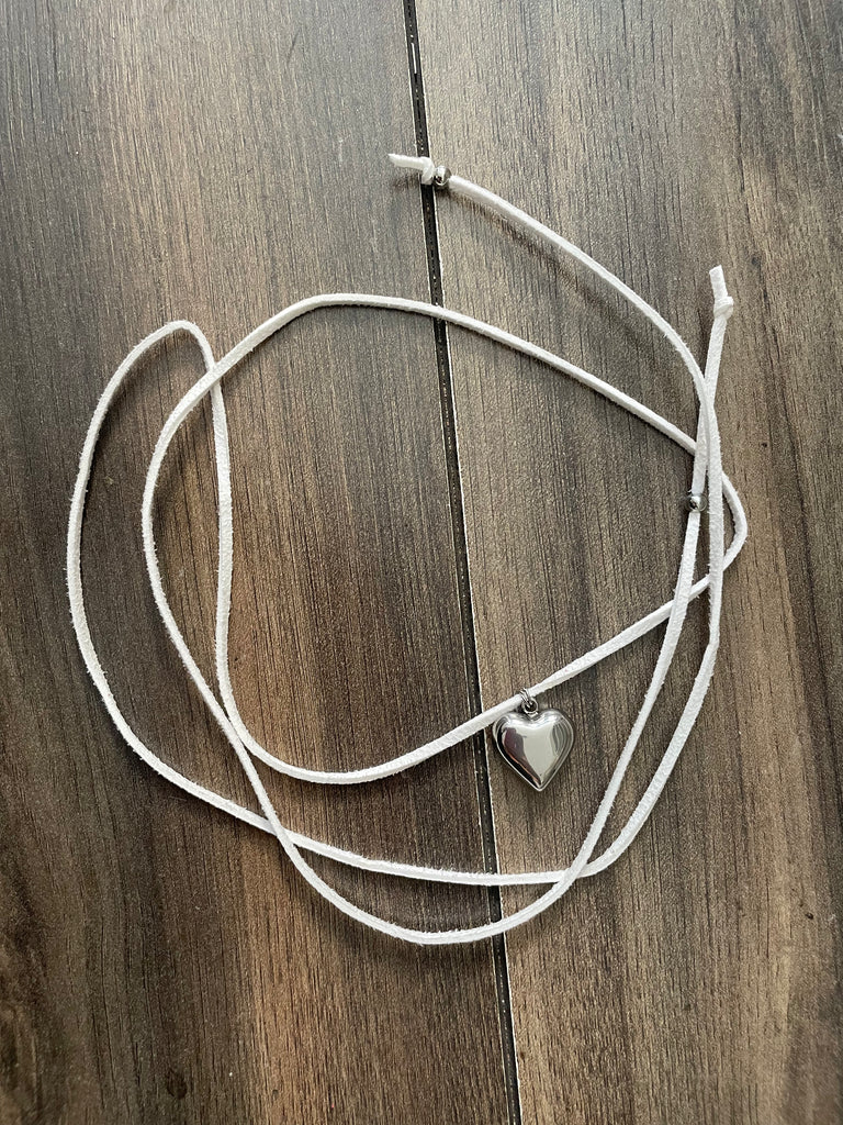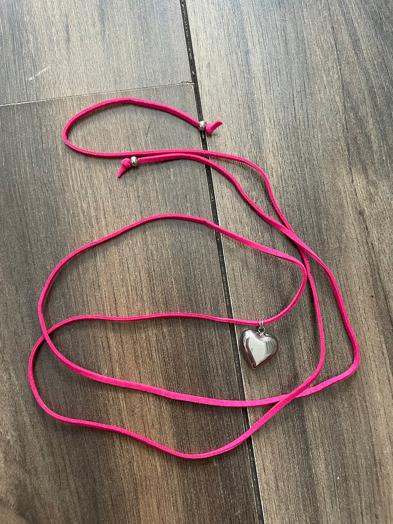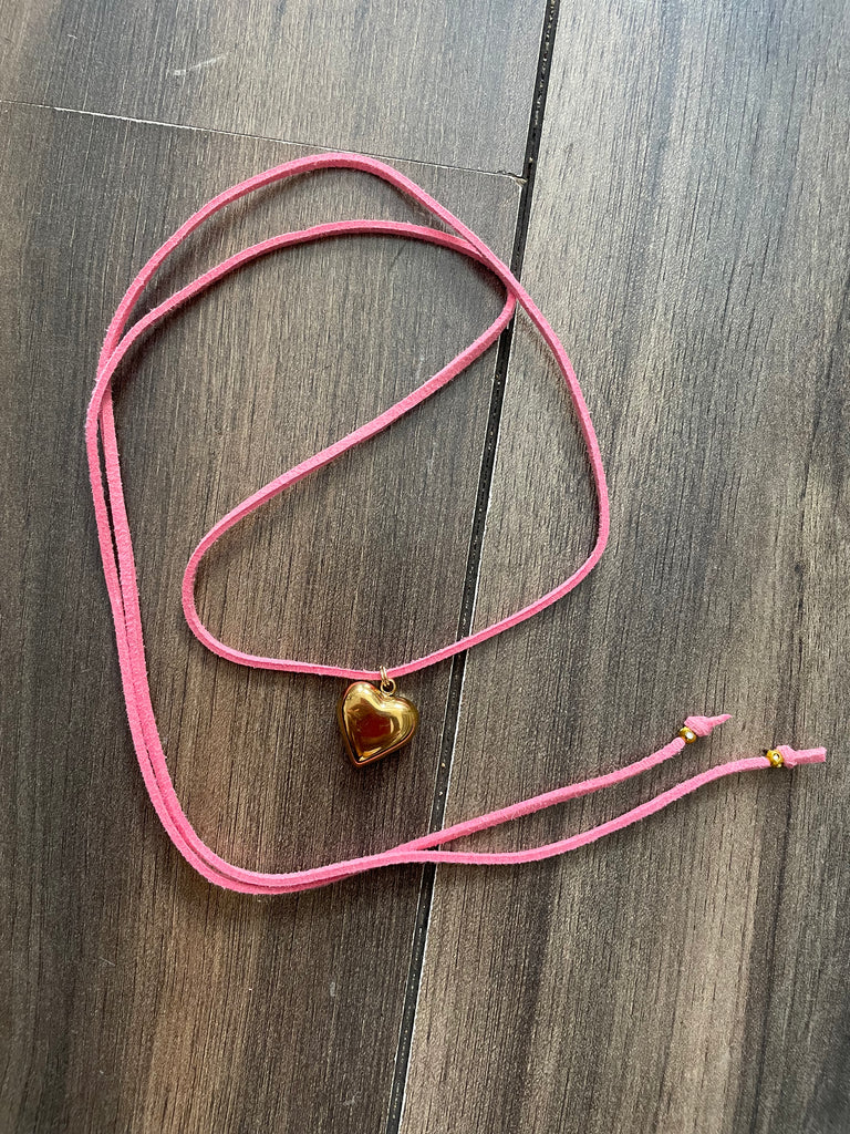 Collana collarino laccio vari colori camoscio cuore puff grande