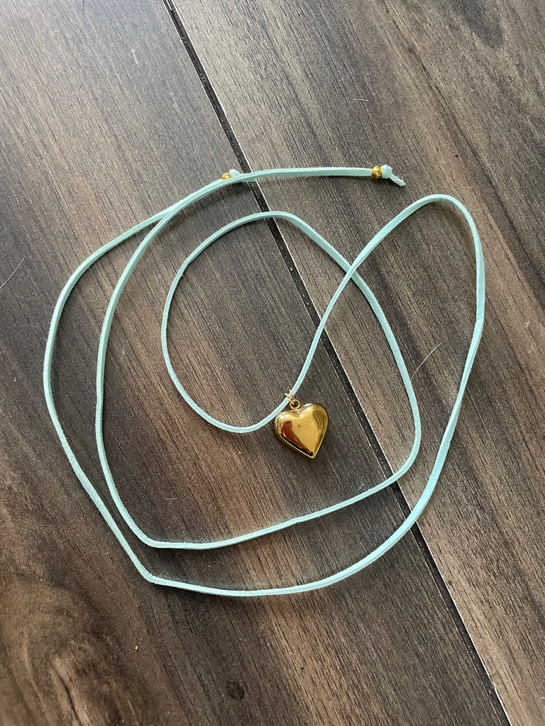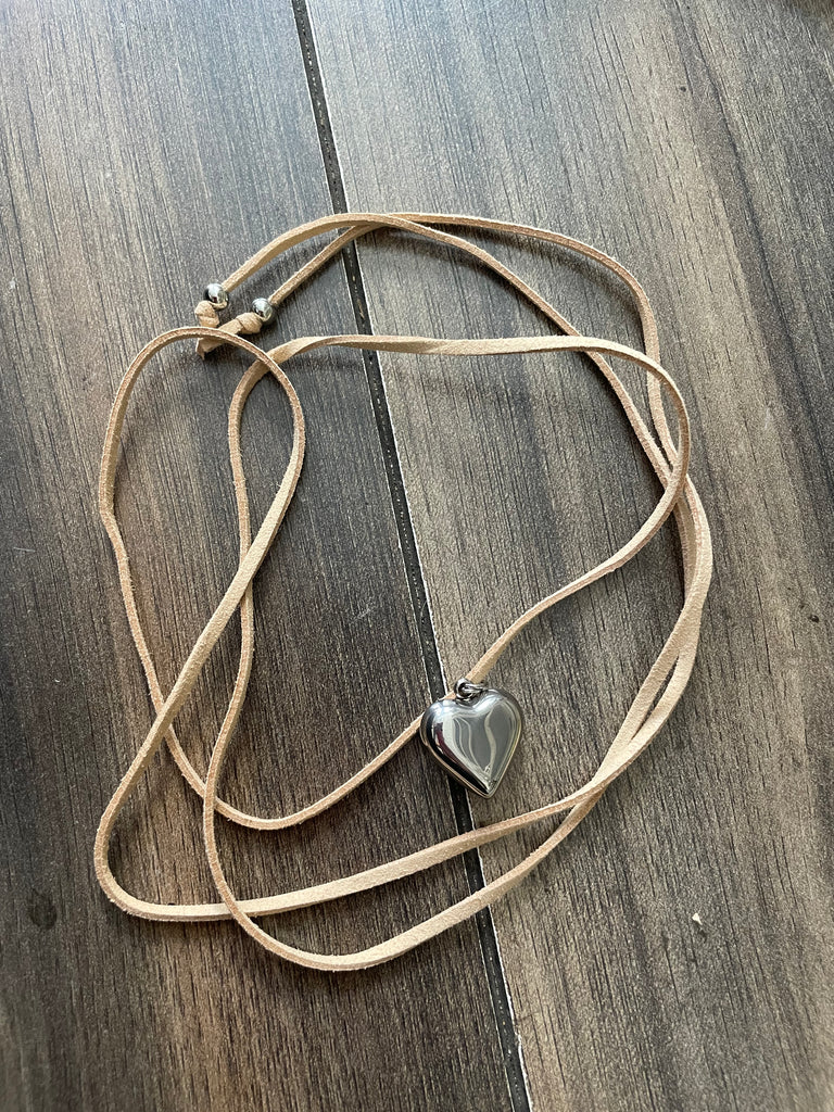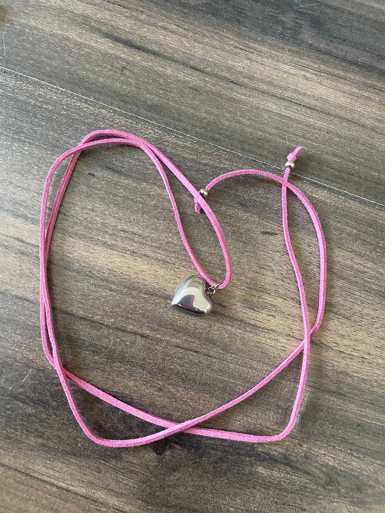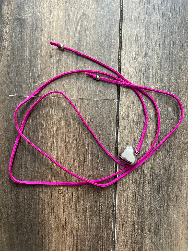 Collana collarino laccio vari colori camoscio cuore puff grande