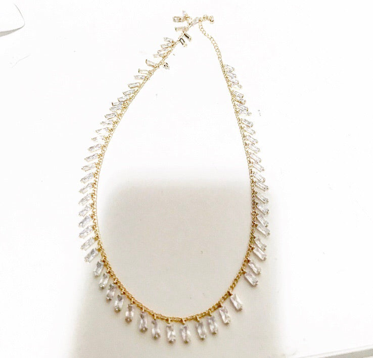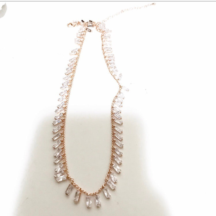 Collana girocollo con pendenti baquette strass