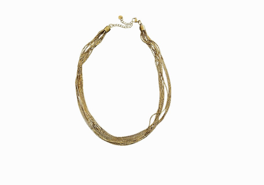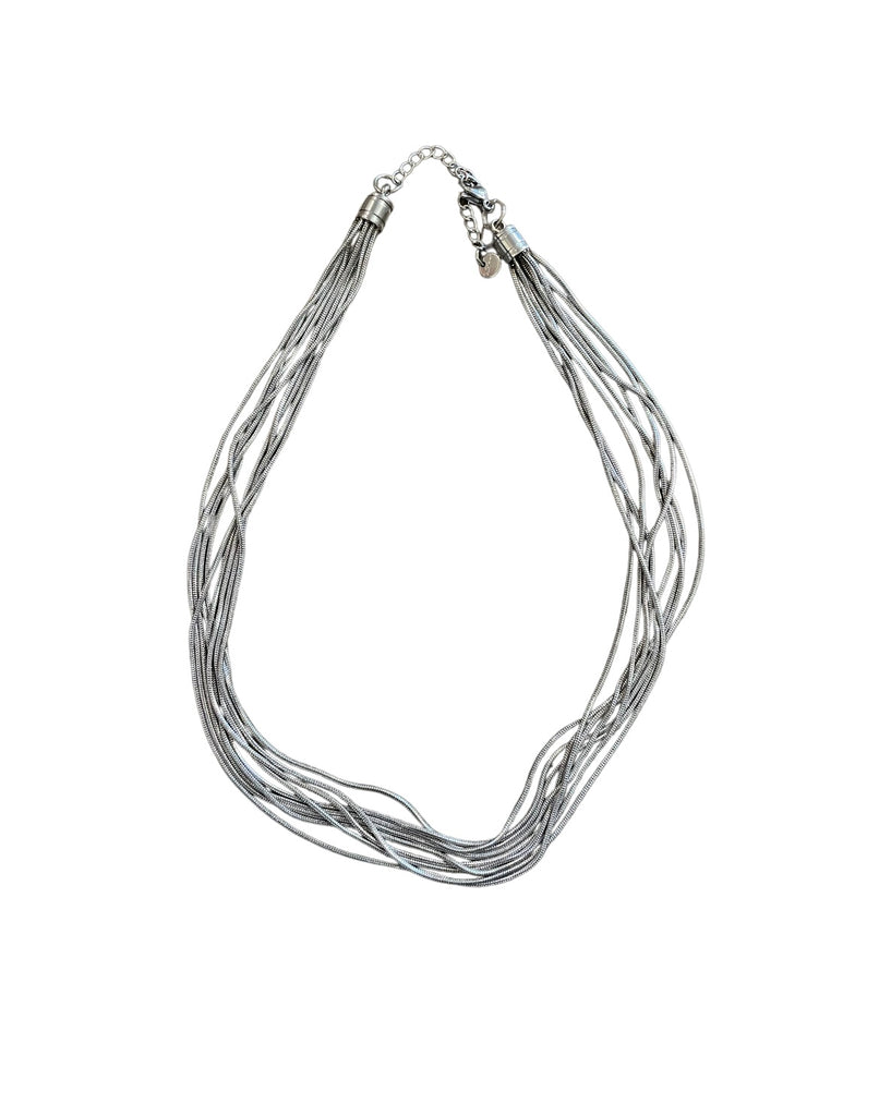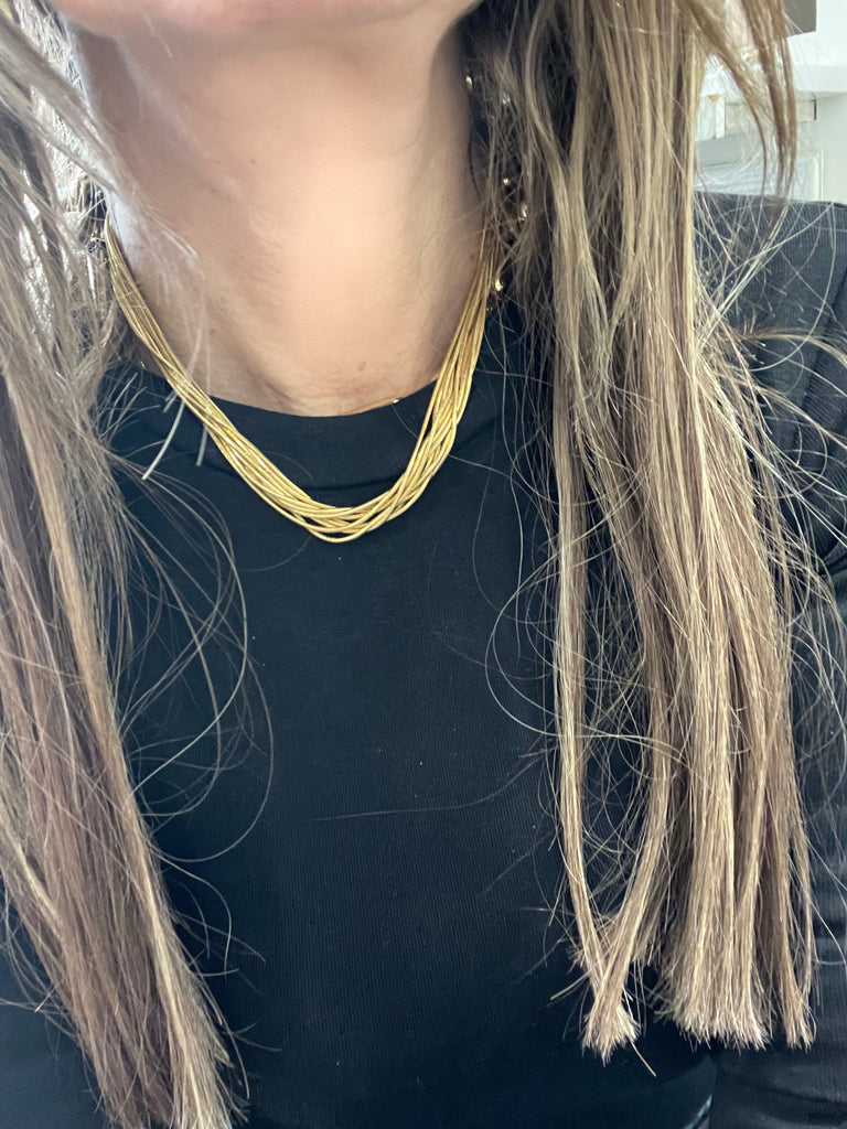 la collana e’ composita da 9 fili micro snake uniti da un unico moschettone