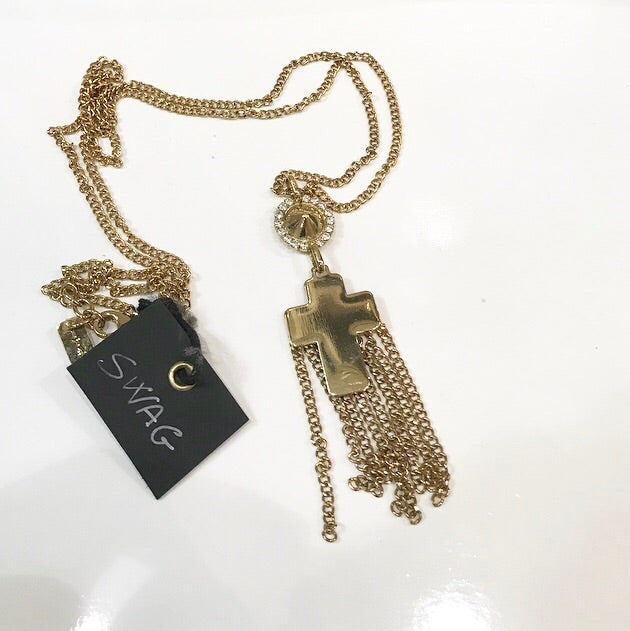 Collana Swag in rodio placcata in oro 18 kt e zirconi completamente nikel free