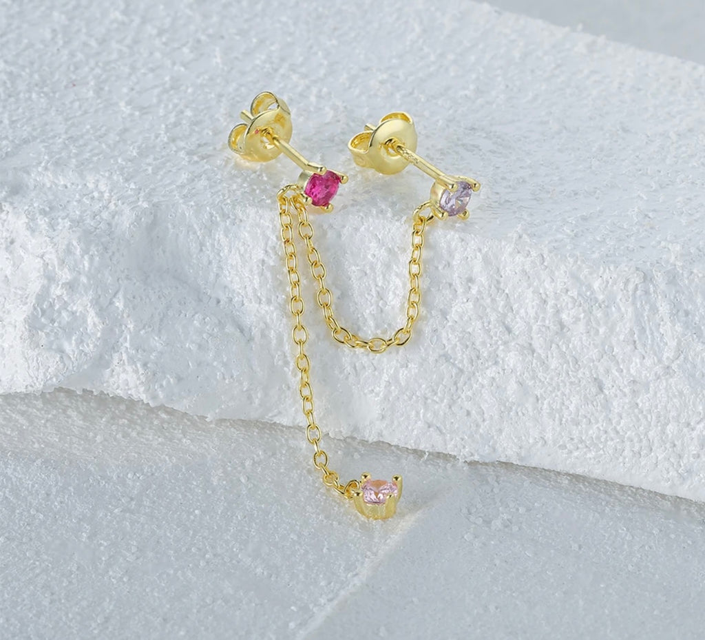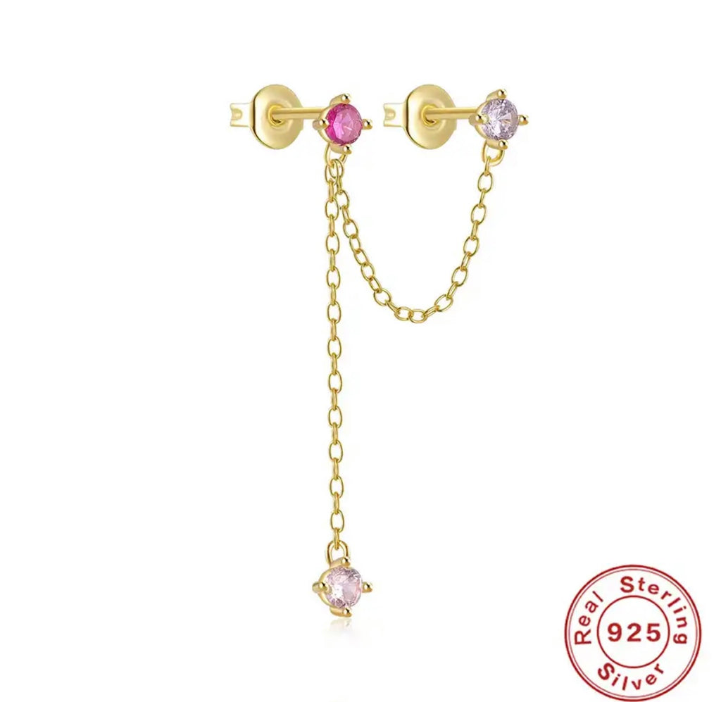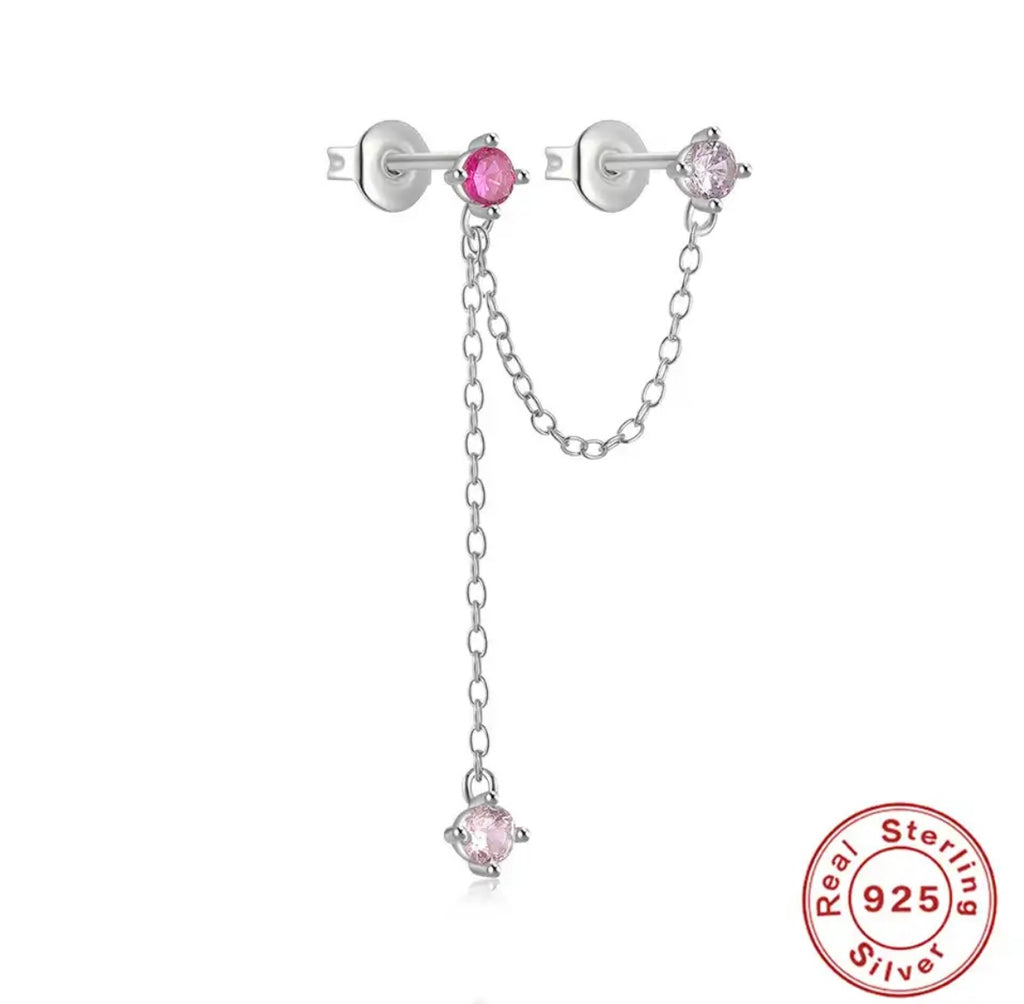 Mono orecchino doppio catenella saliscendi argento 925