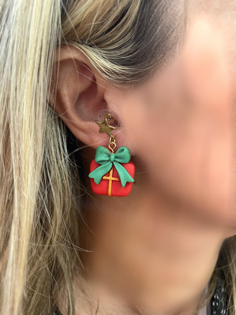 Mono orecchino resiba e parti metalliche in ottone anallergico placcato oro completamente nikel free