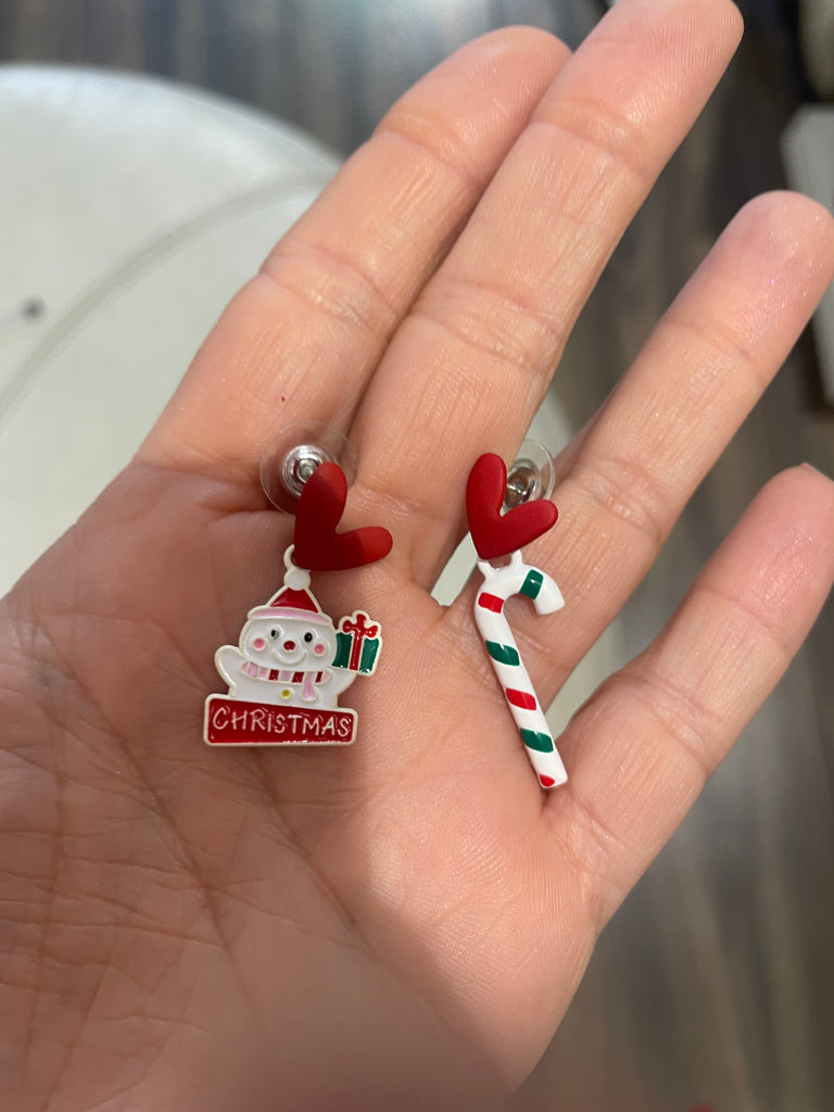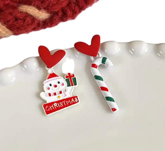 Mono orecchino Christmas Edition Natale pupazzo neve e bastoncino zucchero te