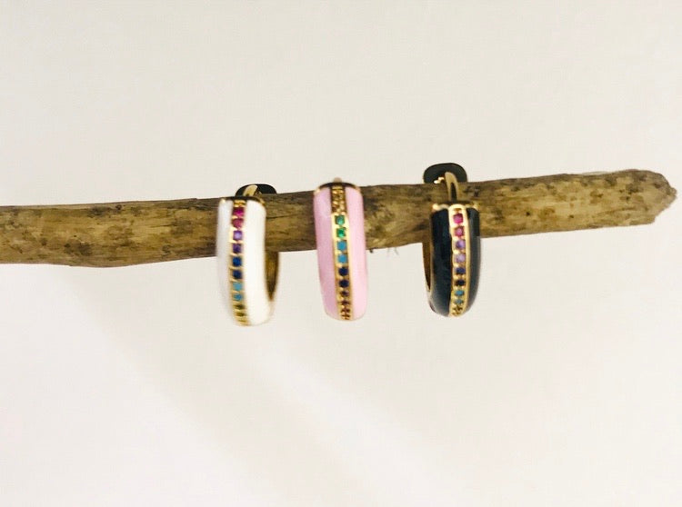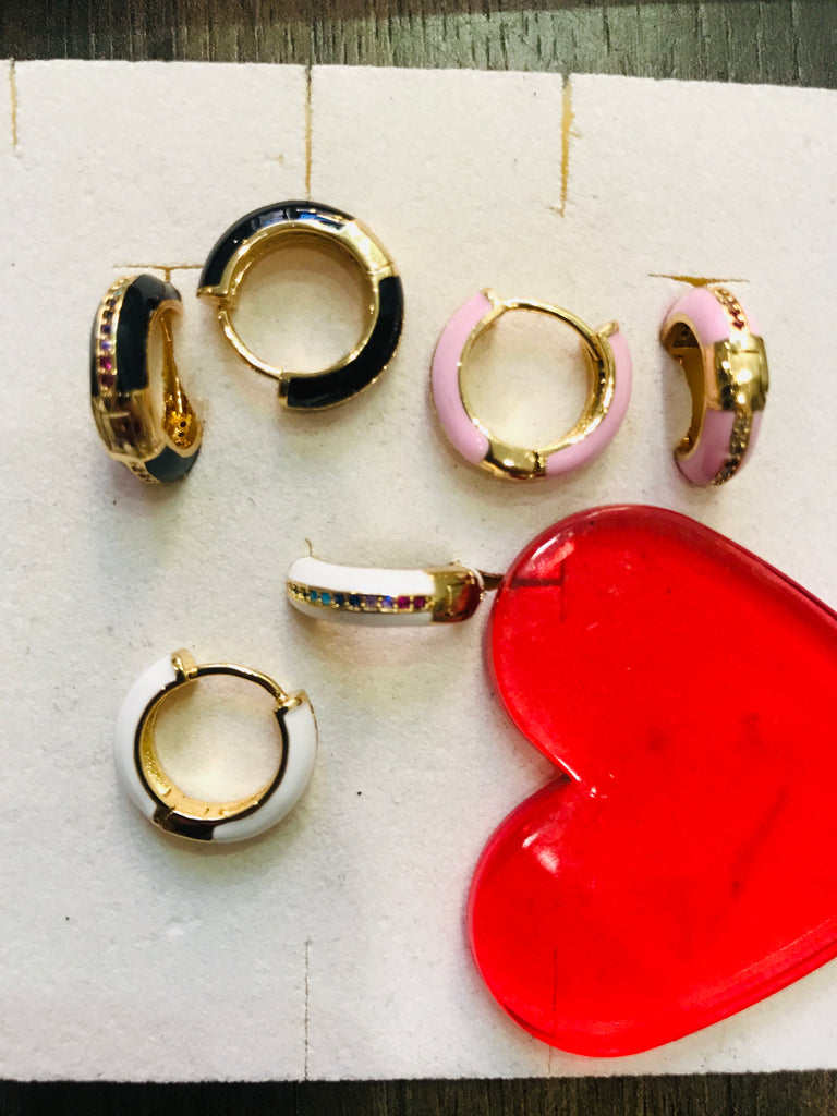 Mono orecchino cerchio cicciotto smalto e zirconi