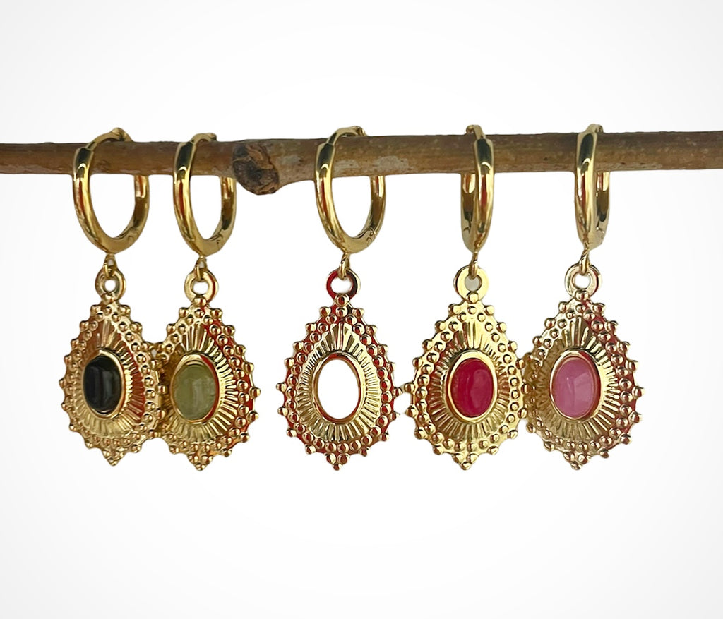 Mono orecchino Stainless stell acciaio anallergico placcato oro completamente nikel free con pietra dura naturale