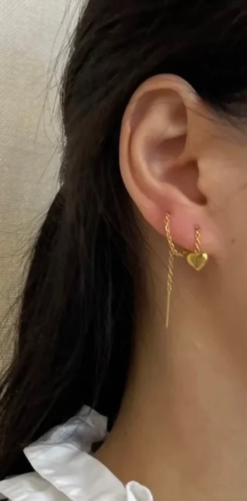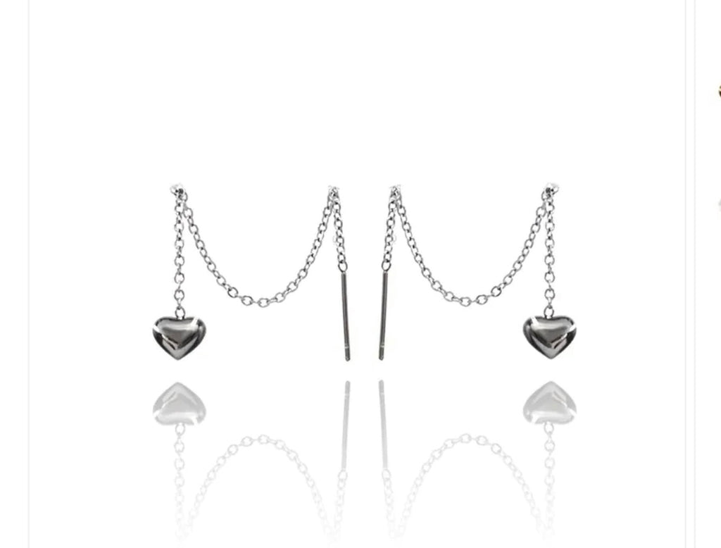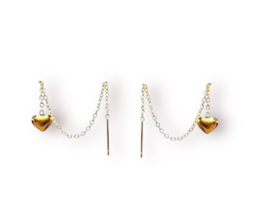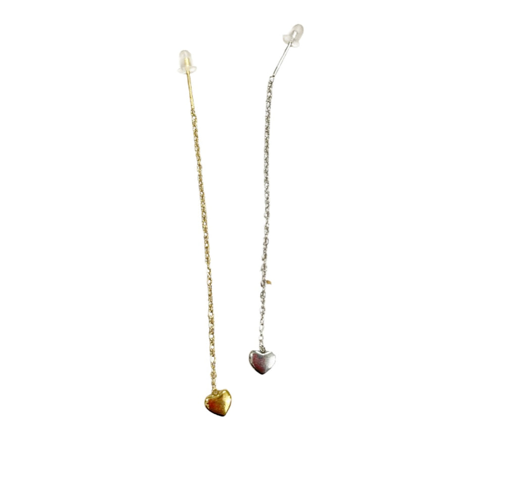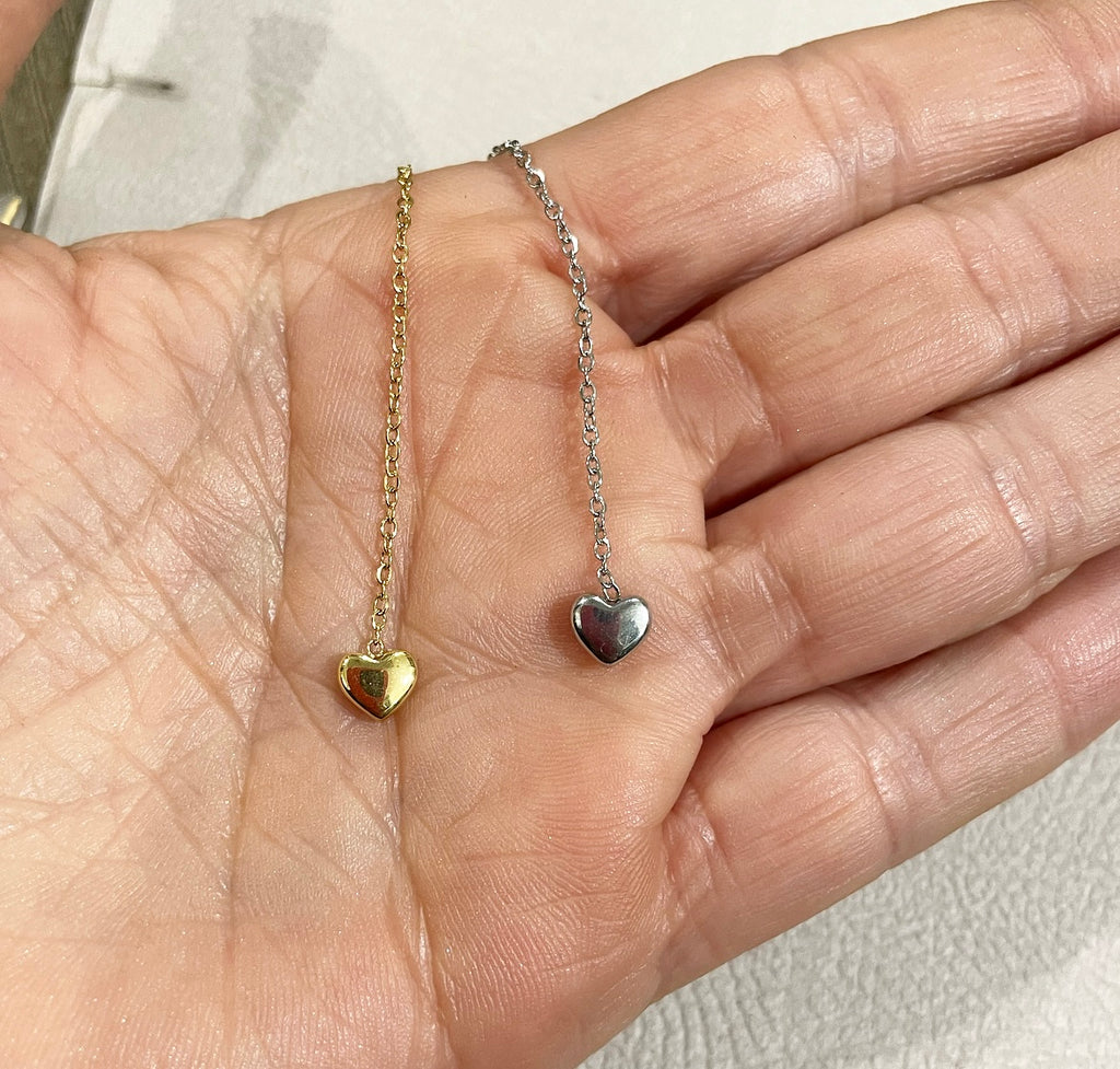 Mono orecchino saliscendi catenella cuore puff due varianti colore
