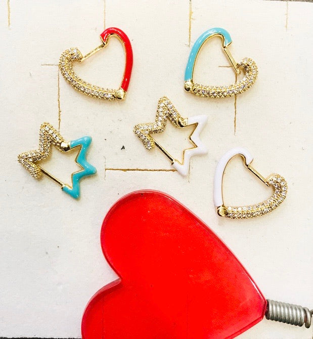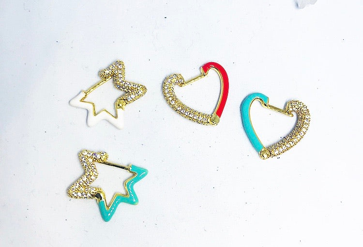 Mono orecchino stella o cuore smalto e zirconi