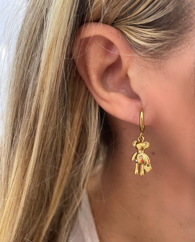 Mono orecchino teddy bear orsacchiotto puff con punti luce
