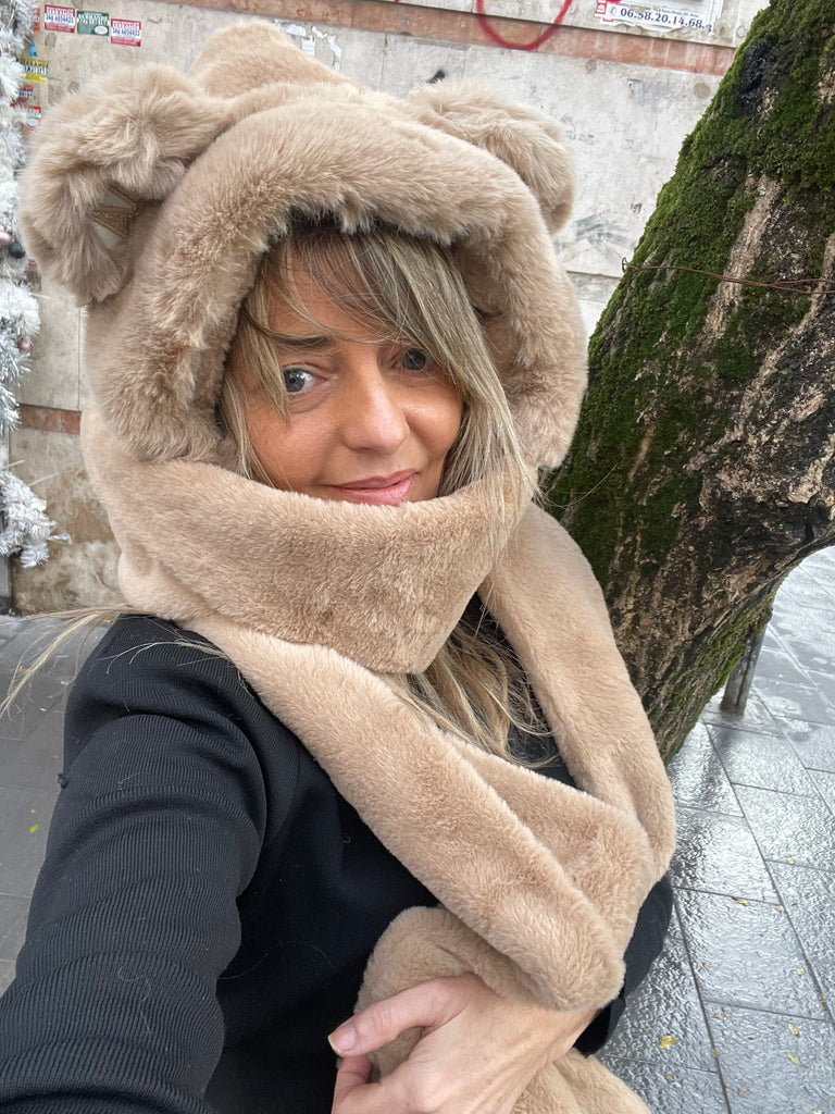 Cappello e sciarpa guanti uniti vari colori peluche orsacchiotto teddy