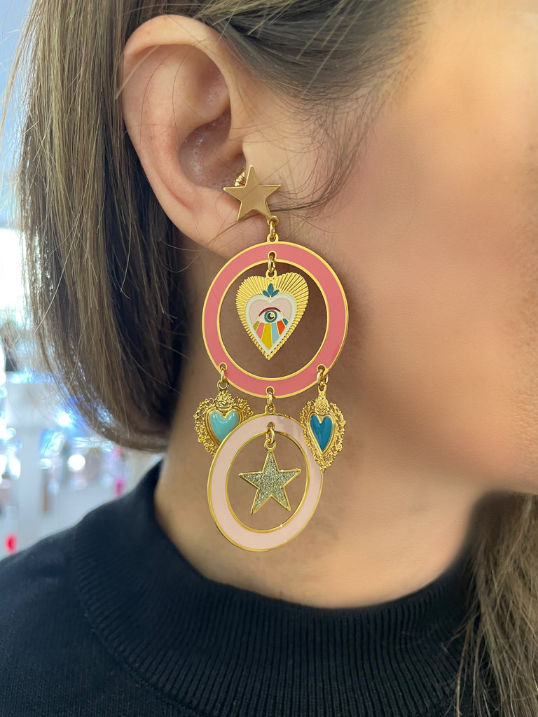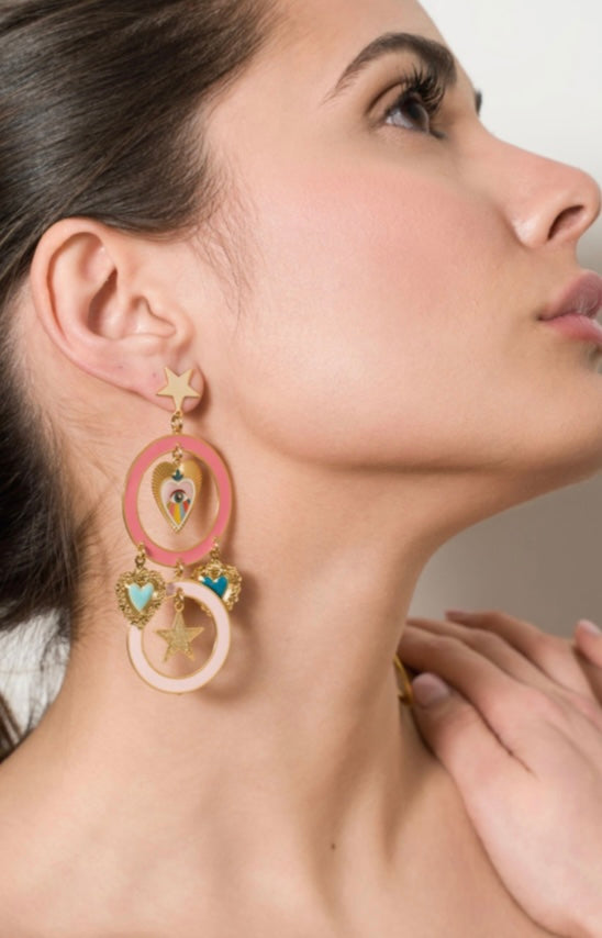 Coppia orecchini principessa glam in ottone anallergico placcato oro completamente nikel free
