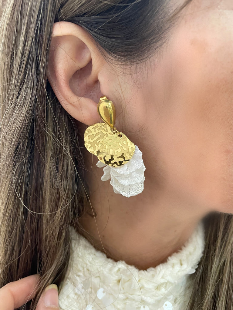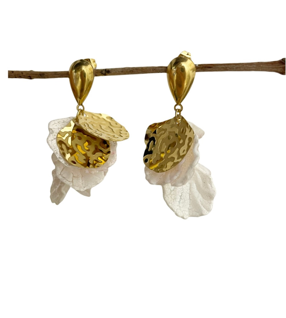 Coppia orecchini in Stainless steel acciaio inox anallergico placcato oro completamente nikel free e madreperla