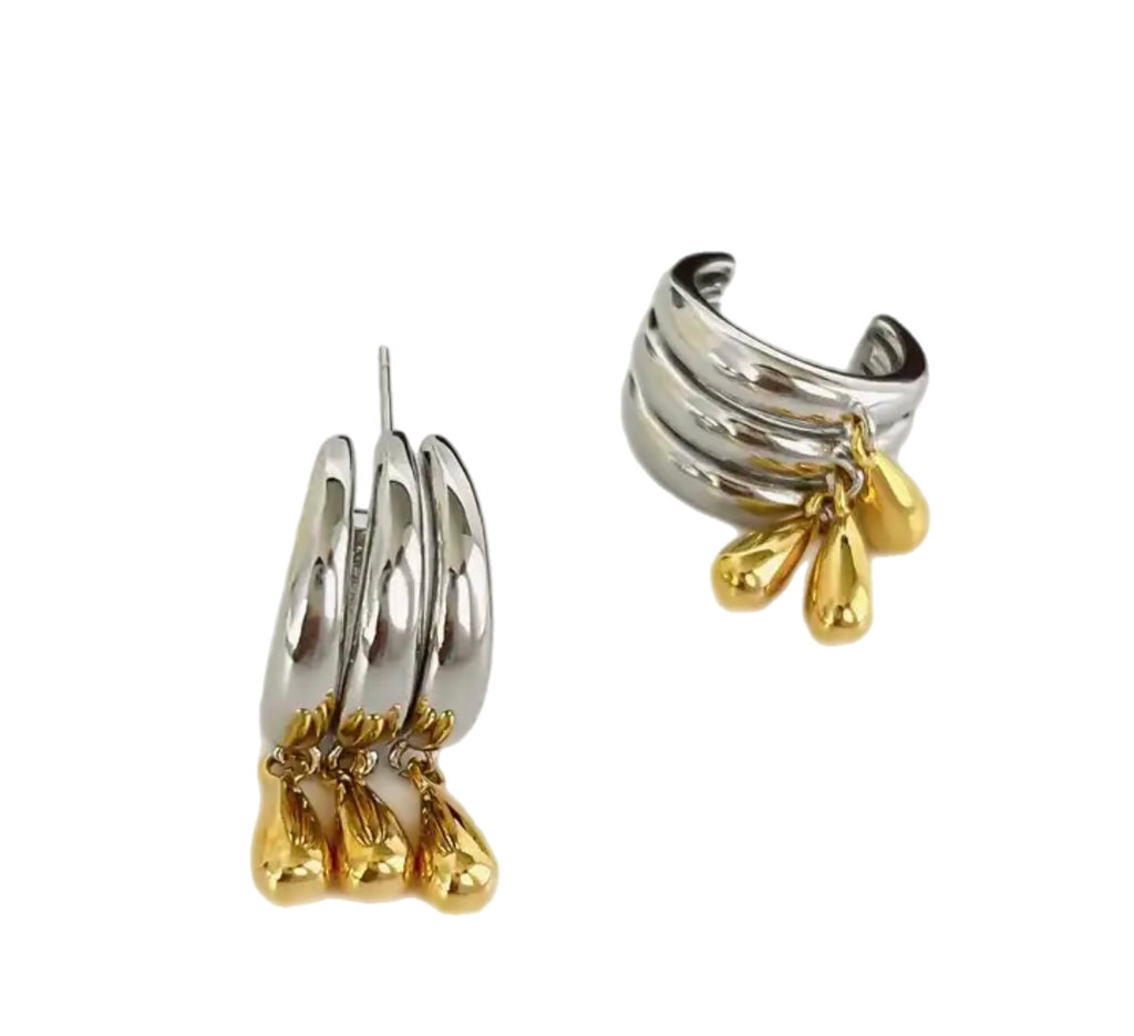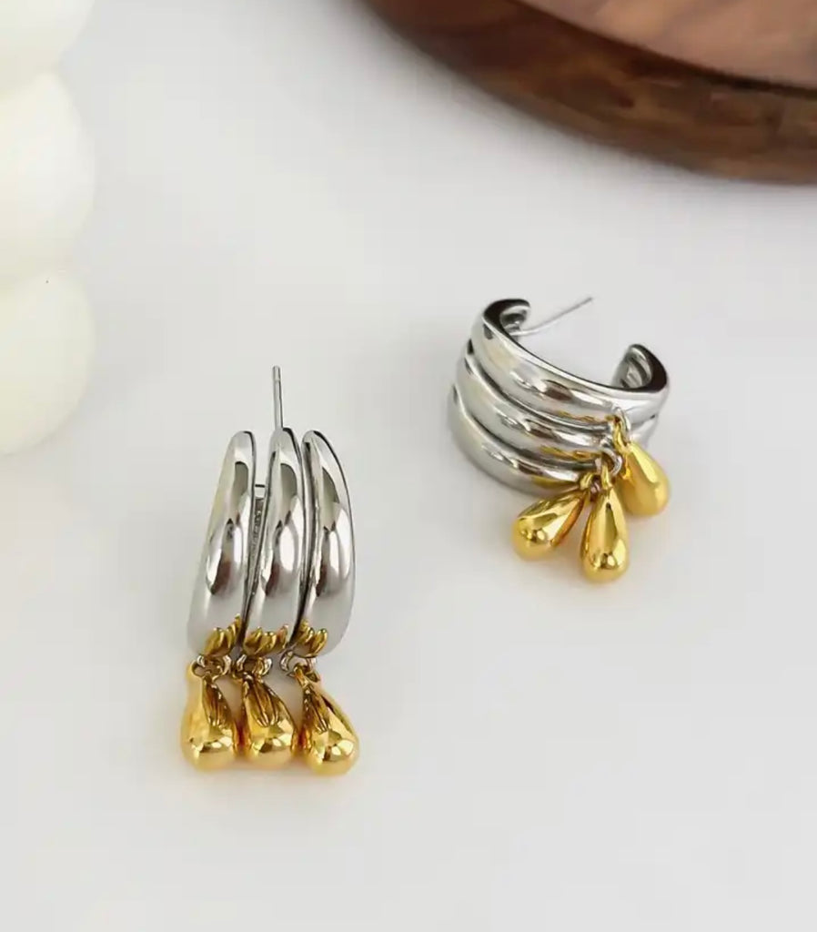 Coppia orecchini Silvia triplo cerchio unito con gocce