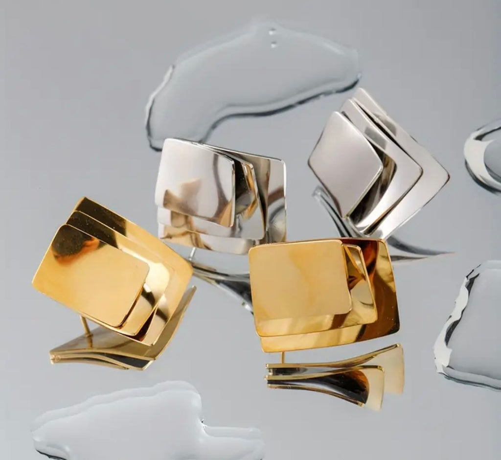Coppia orecchini Stainless steel acciaio inox anallergico  placcato oro completamente nikel free