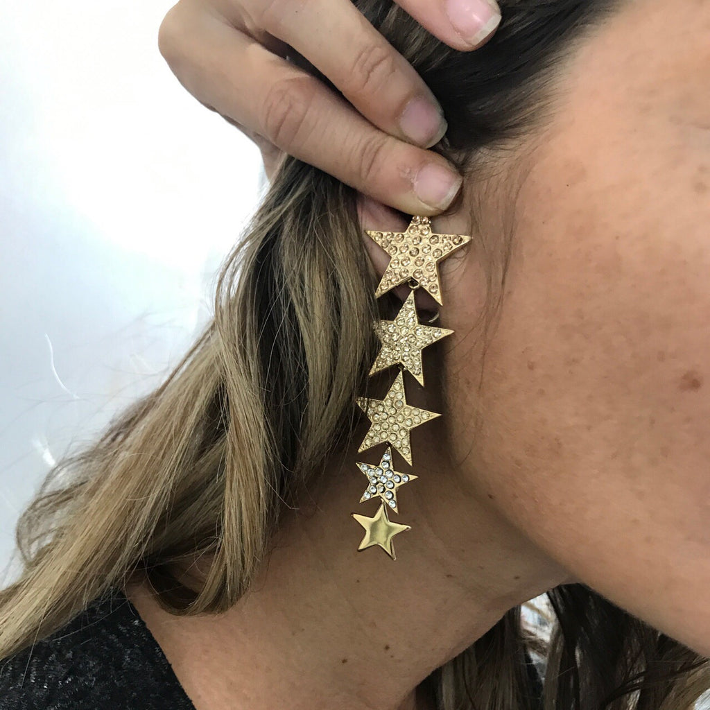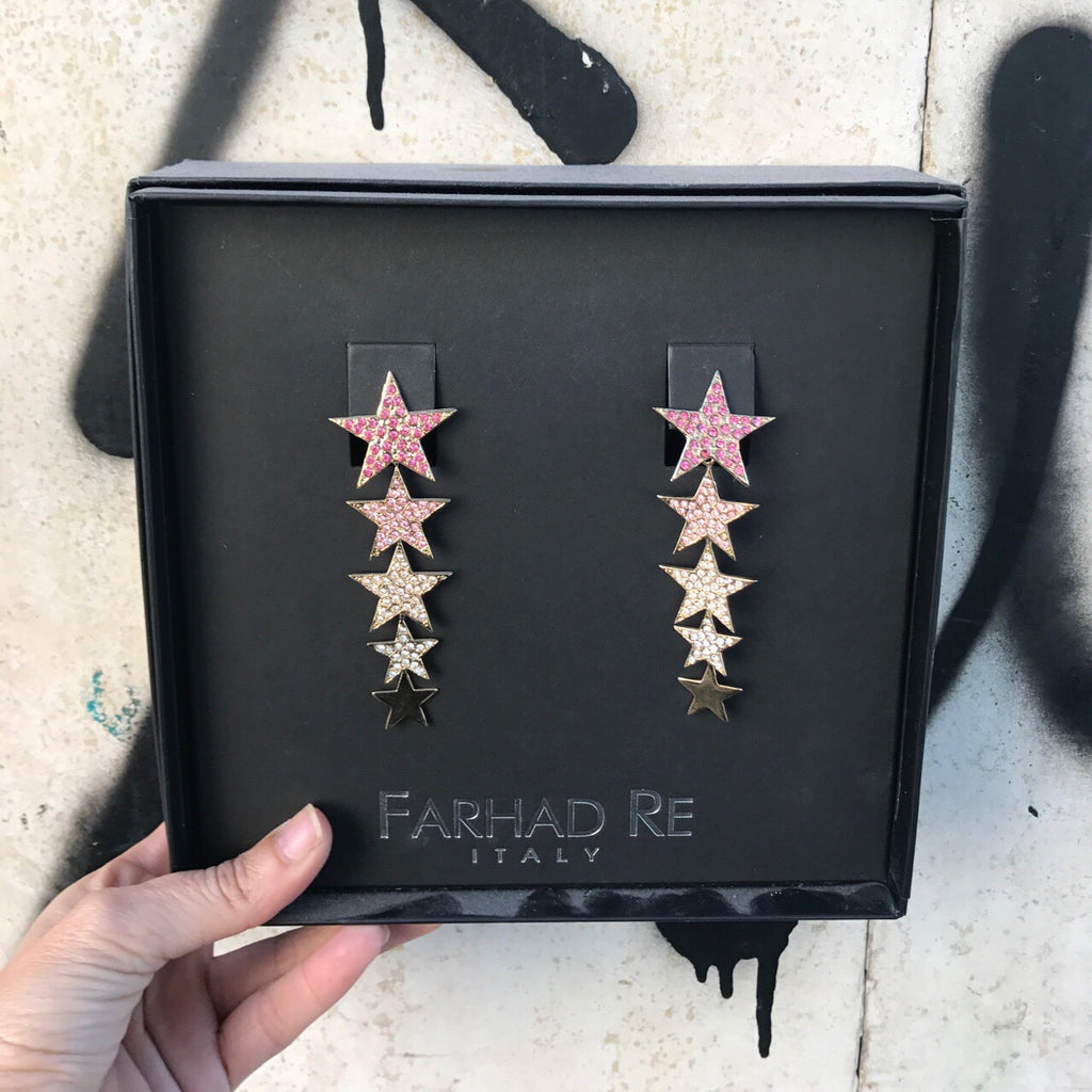 Orecchini luxury con placcatura in oro 18 kt e tutti impreziositi  con cristalli Swarovski brand farhad re  con la loro scatola #orecchini #stelle#farhadre