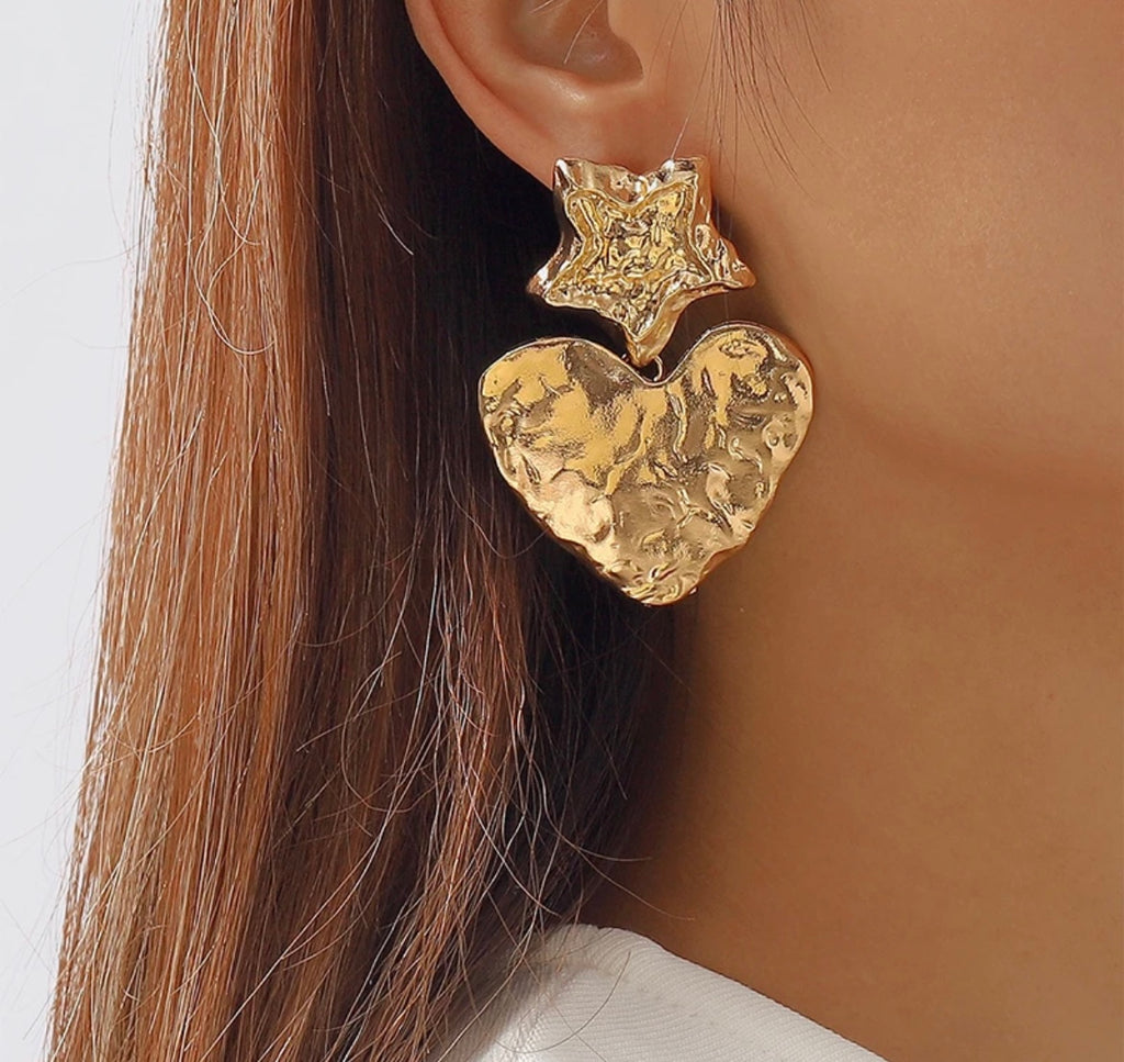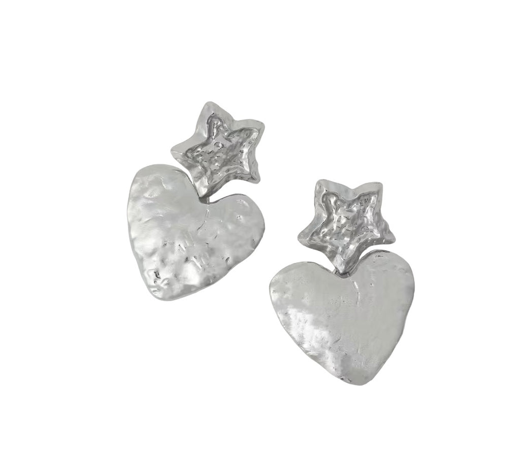 Coppia orecchini stella cuore effetto martellato