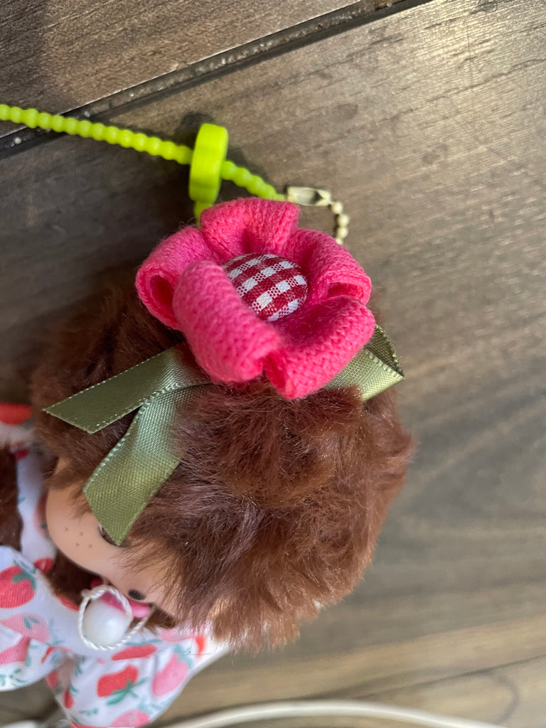 Portachiavi e applique per borsa Monchichi lady abitìno con fragole