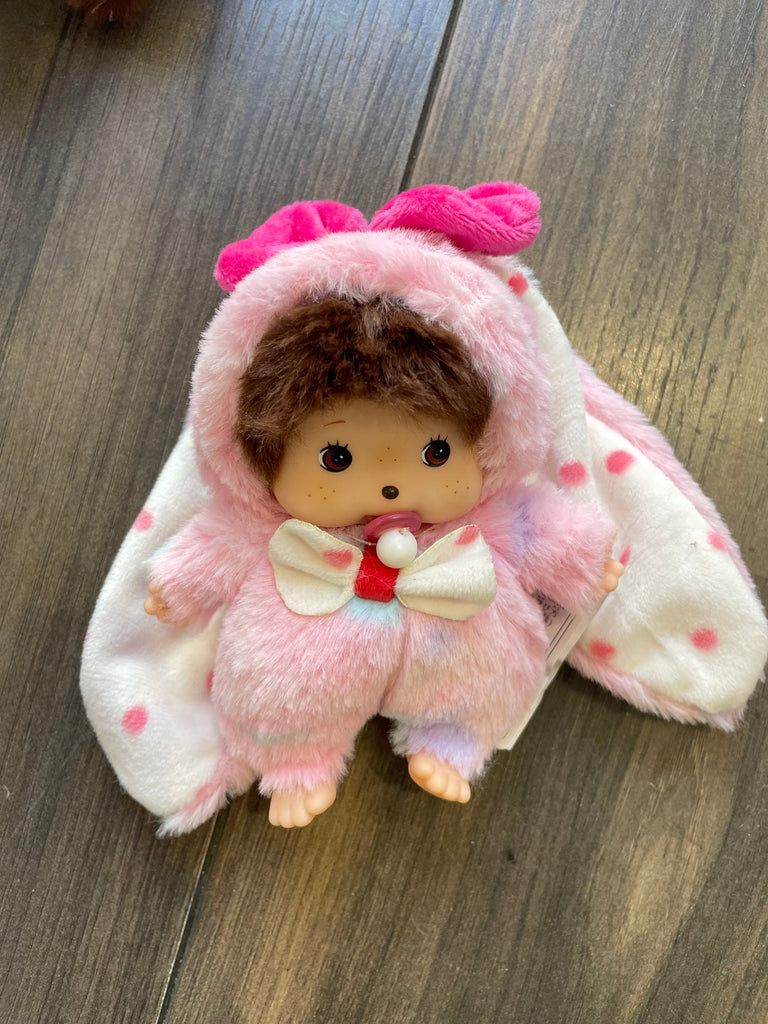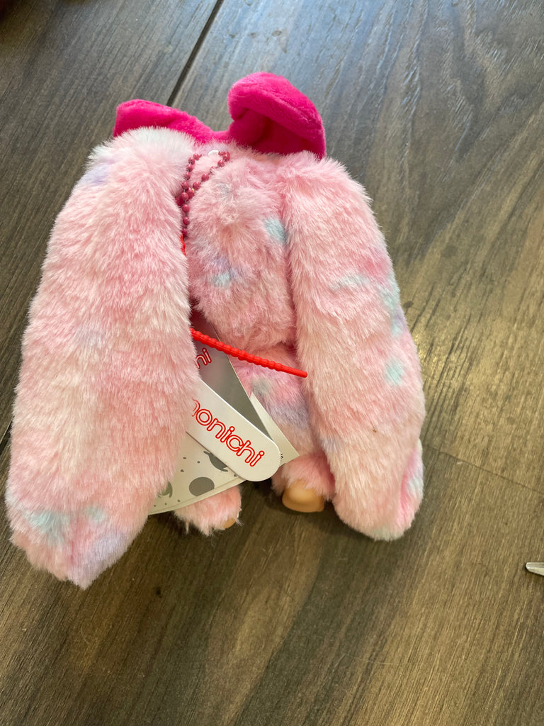 Portachiavi e applique per borsa Monchichi coniglietto orecchie lunghe rosa con cuoricini