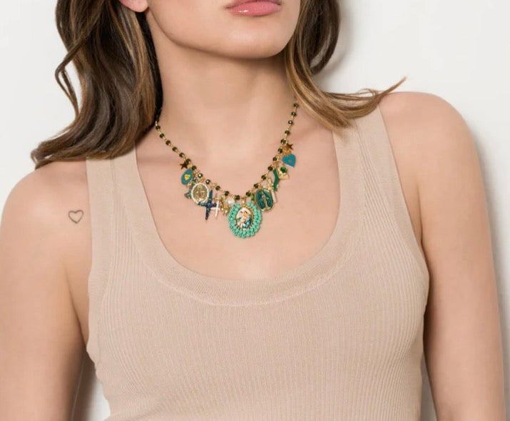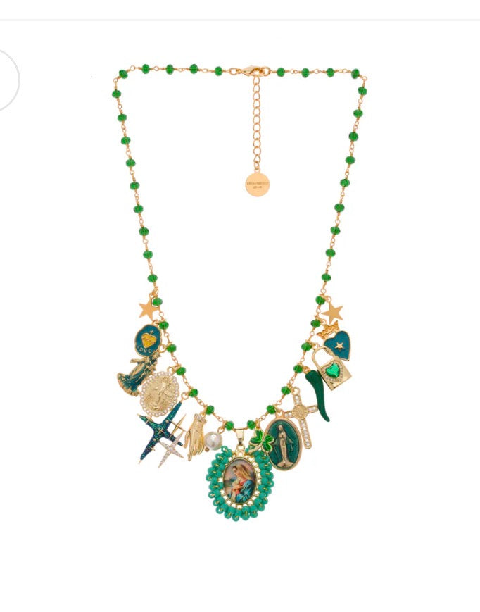Collana principessa Glam Holy Mary multi charms green
