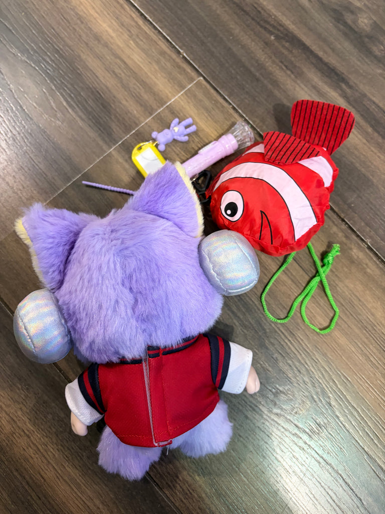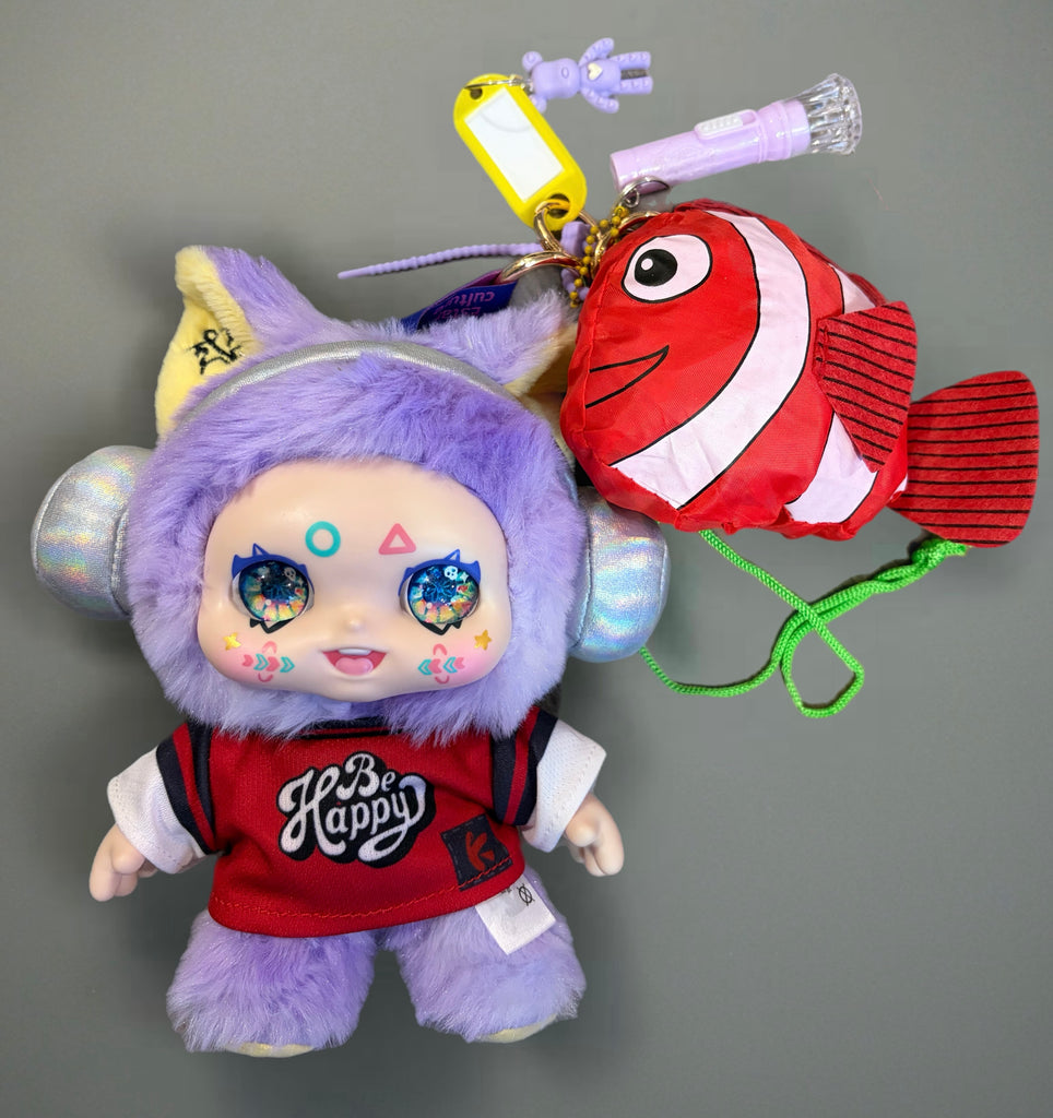 portachiavi pesciolino che racchiude una dustbag ( in foto potete vederla aperta in una variante colore rosa ) il colore che riceverete con questo pupazzo e’ quello del pesciolino che vedete abbinato al pupazzo