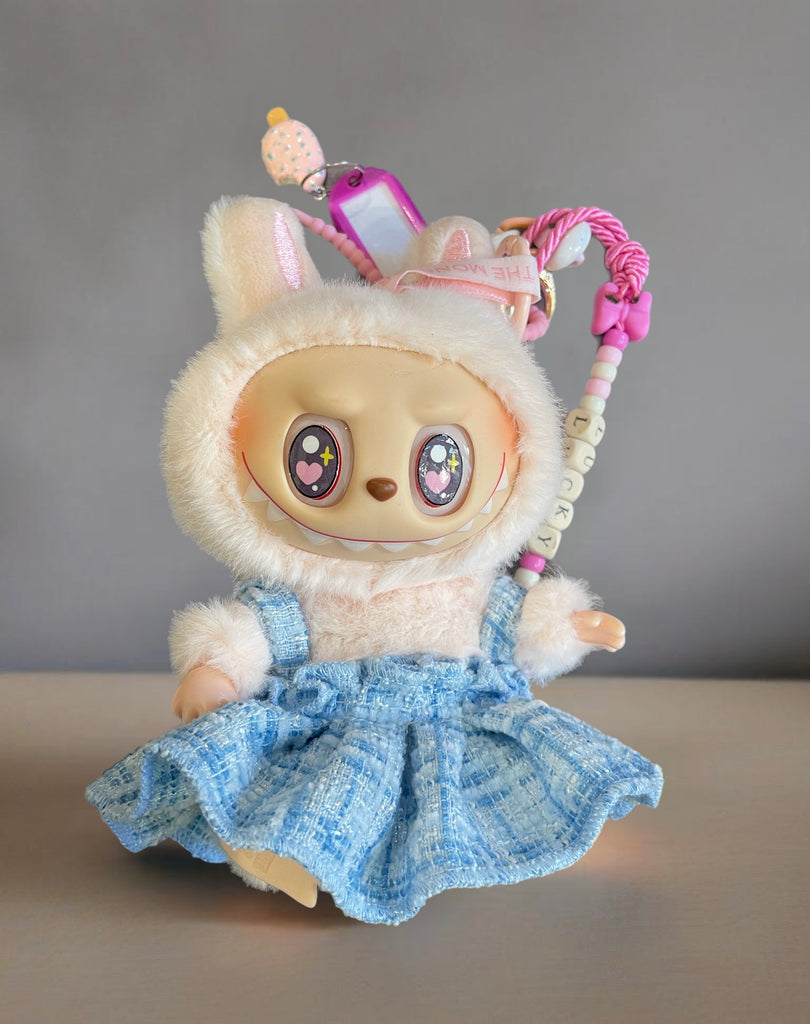 Vestito tessuto filato azzurro abitìno per Labubu e monchichi