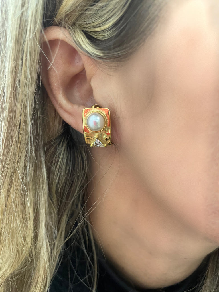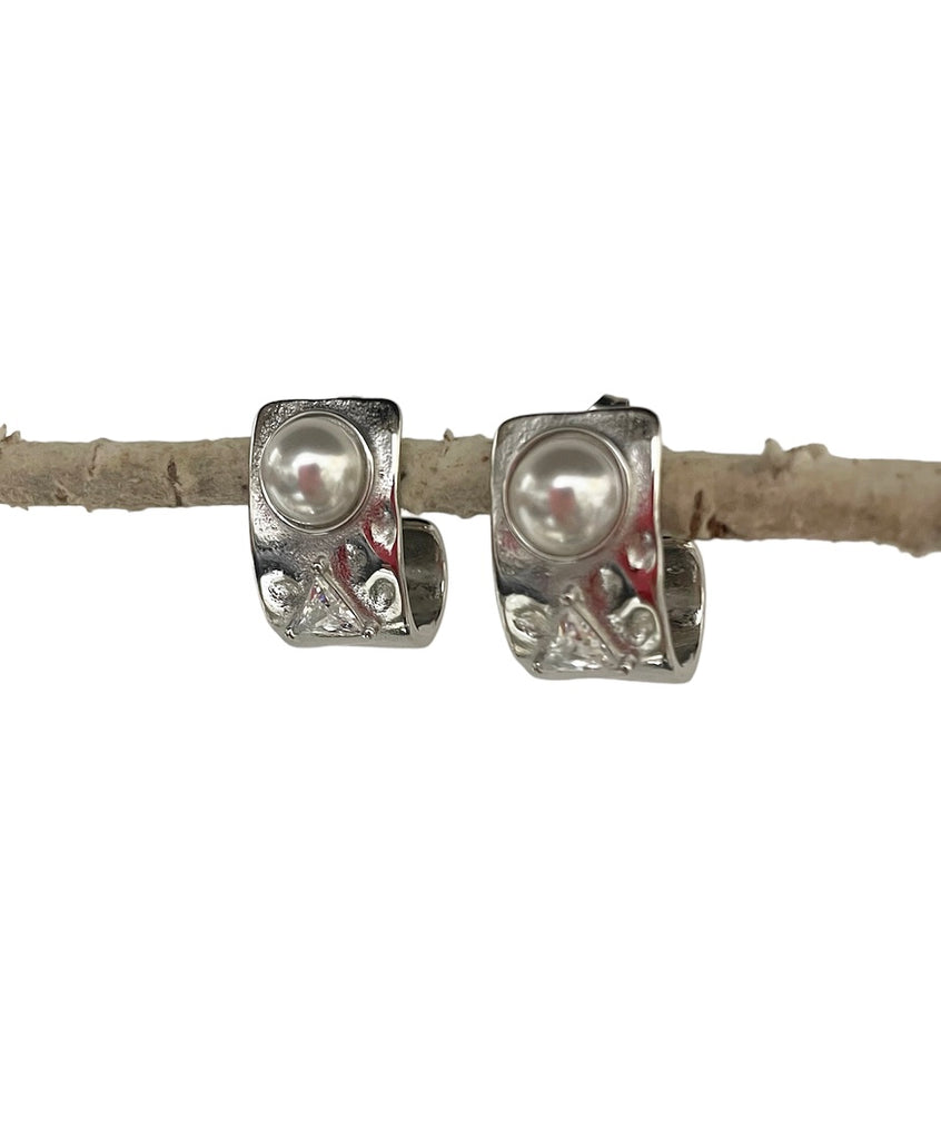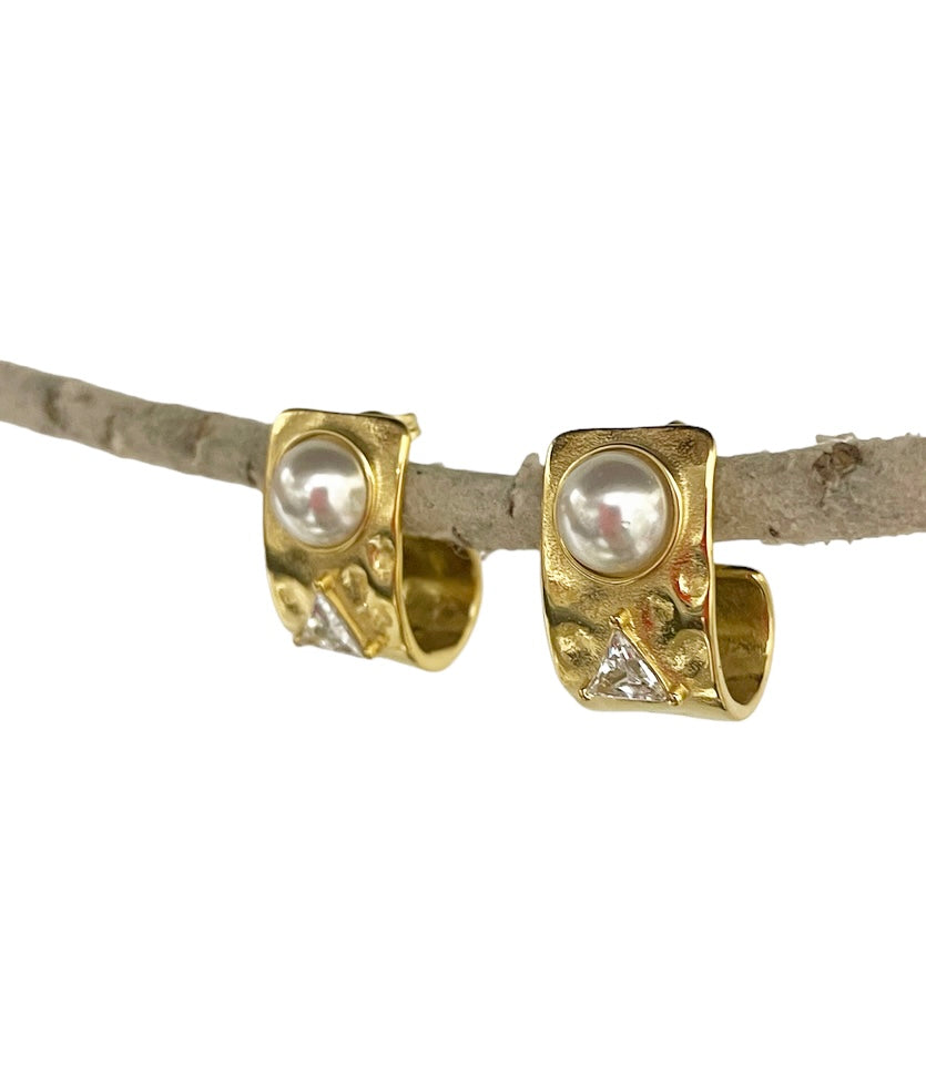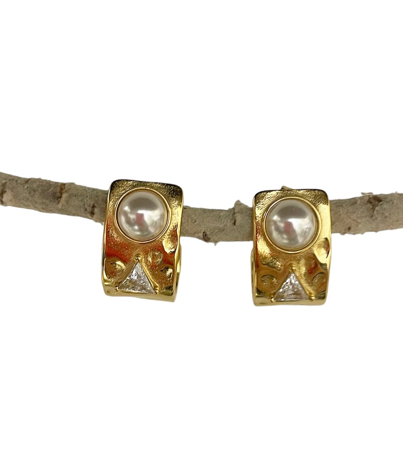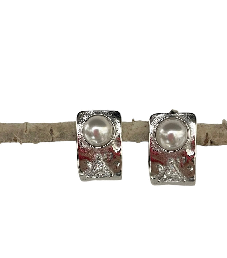 Coppia orecchini effetti martellato perla e punto luce triangolare due varianti colore
