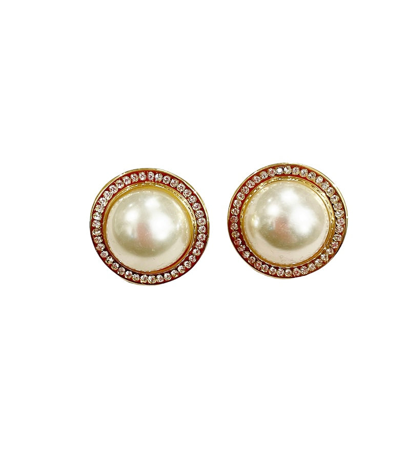 Coppia orecchini rotondo con perla e crystal due varianti colore